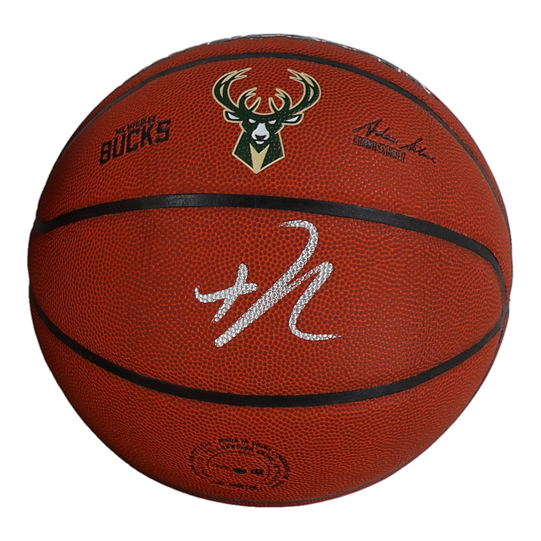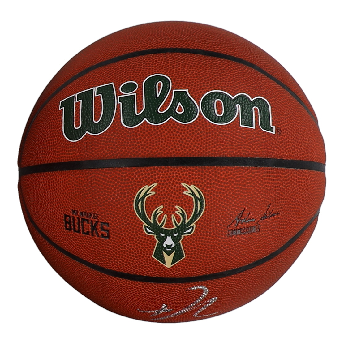 Wilson Milwaukee Bucks Logo Basketball. Hand-signed by Giannis Antetokounmpo.