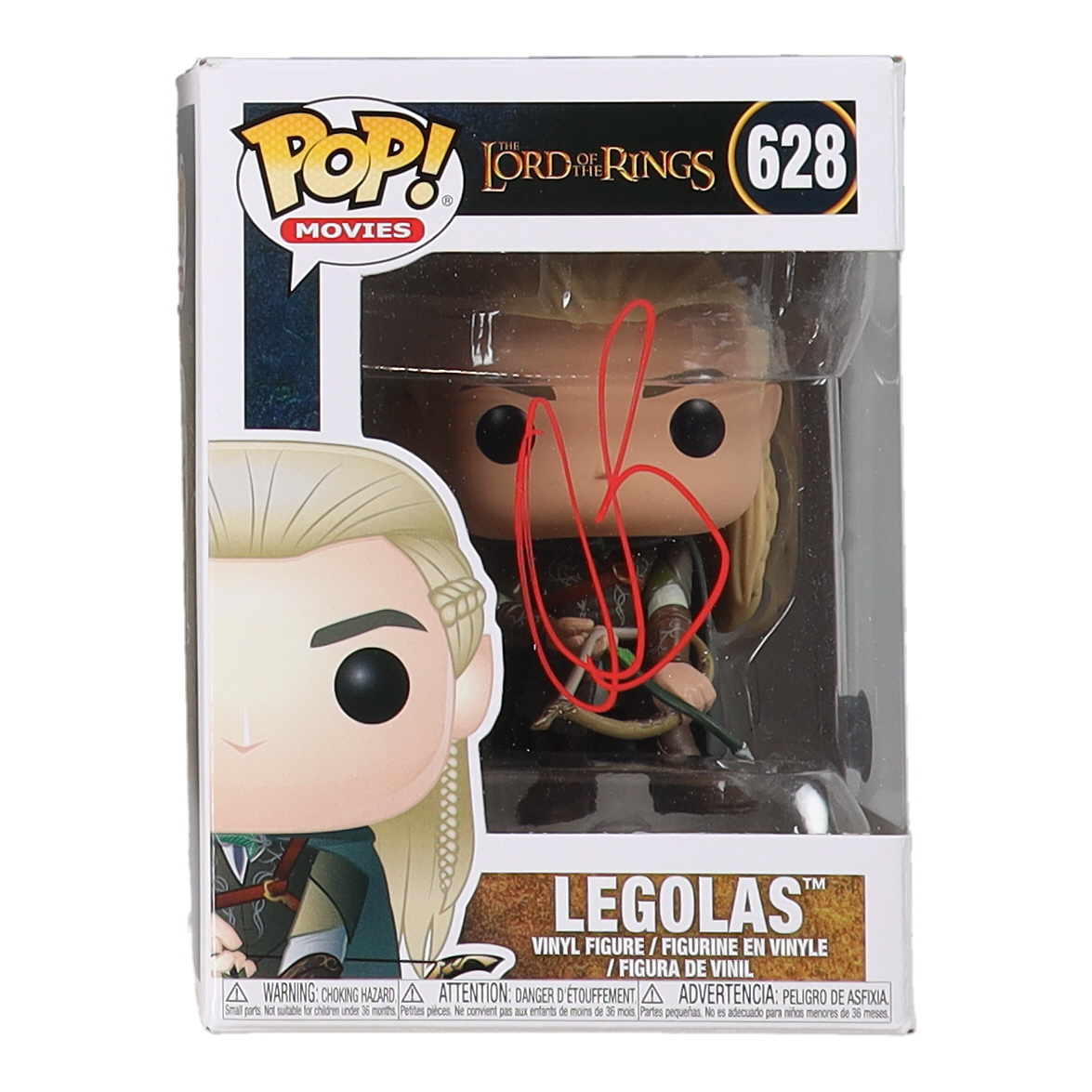 Funko Pop! figure measures approximately 4" tall and has been hand-signed on the packaging by Orlando Bloom (Legolas).