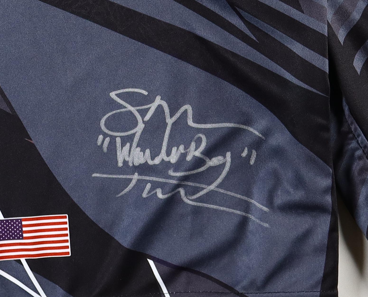 Custom MMA shorts, everything is printed on. Hand-signed & inscribed by Stephen Thompson.