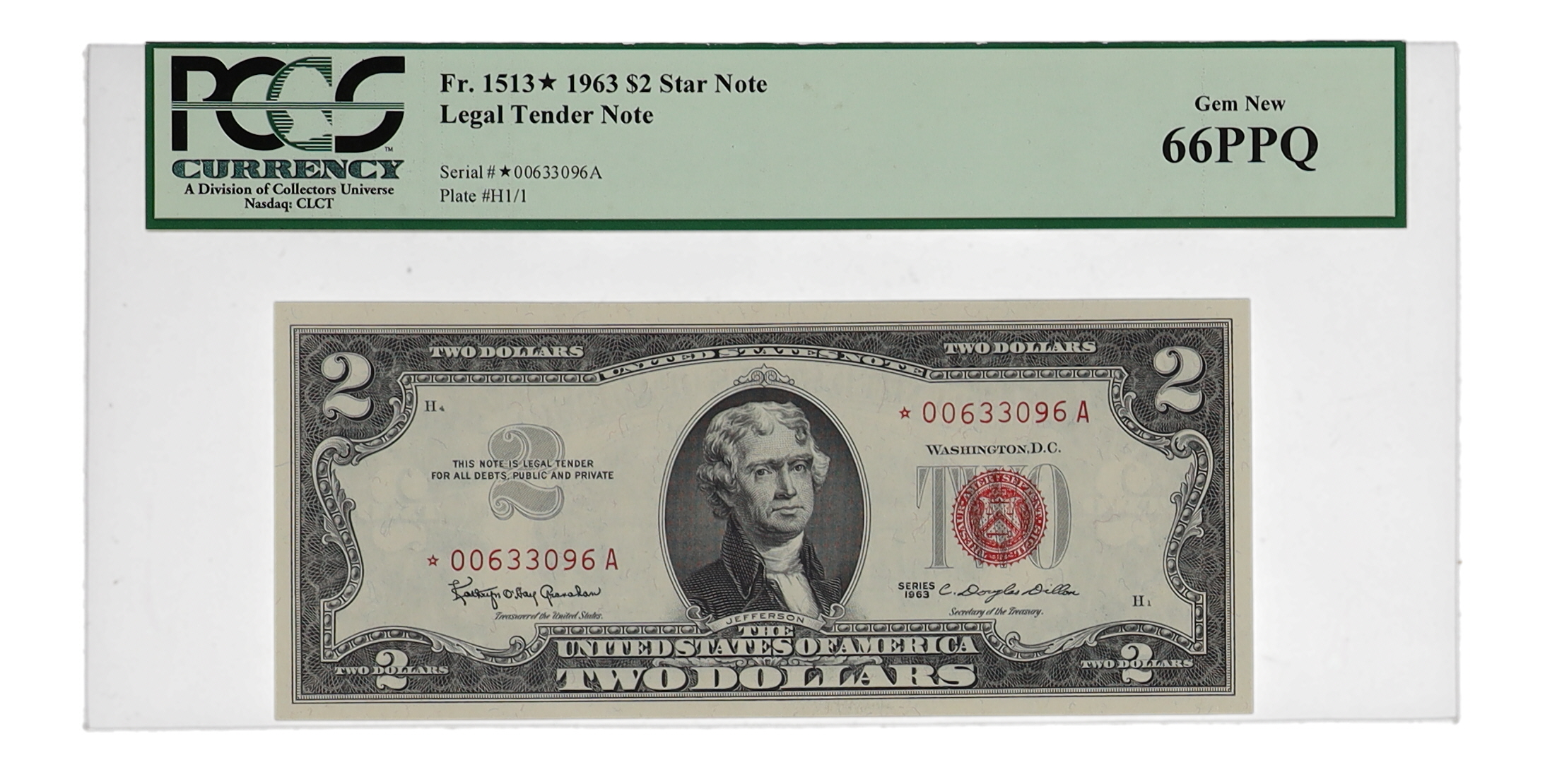 1963 United States Legal Tender $2 Two Dollar Star Note (PCGS Gem New 66PPQ)