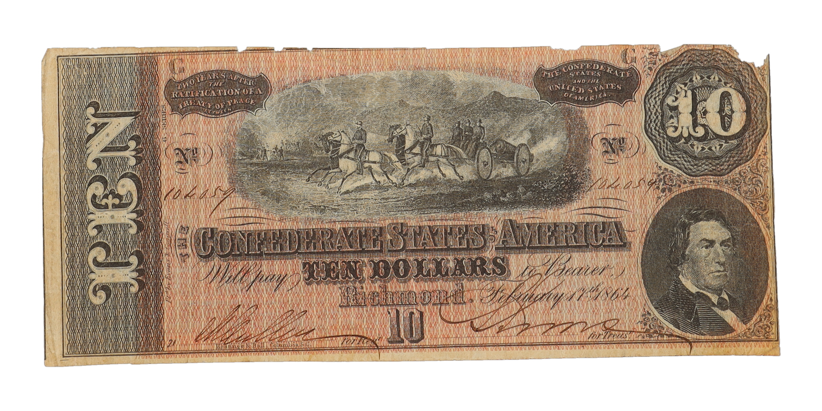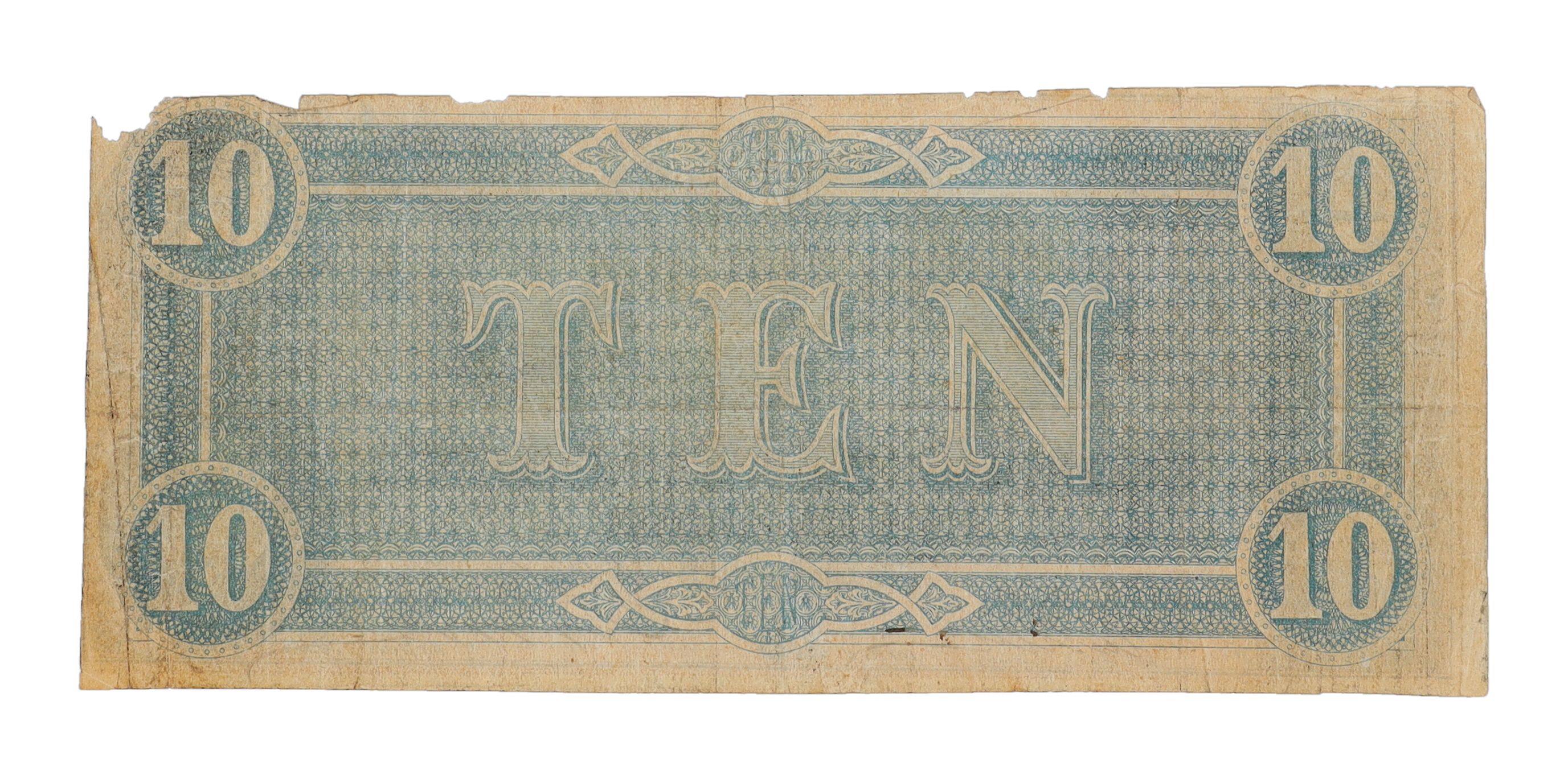 1864 Confederate States of America $10 Ten Dollar Bank Note