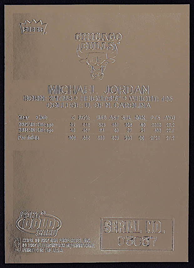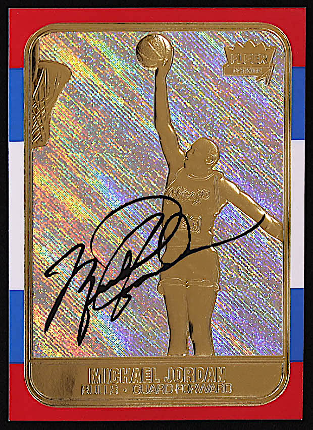 Michael Jordan 1997 Fleer Premier Signature Series Holo Prism Refractor 23Kt Gold Card