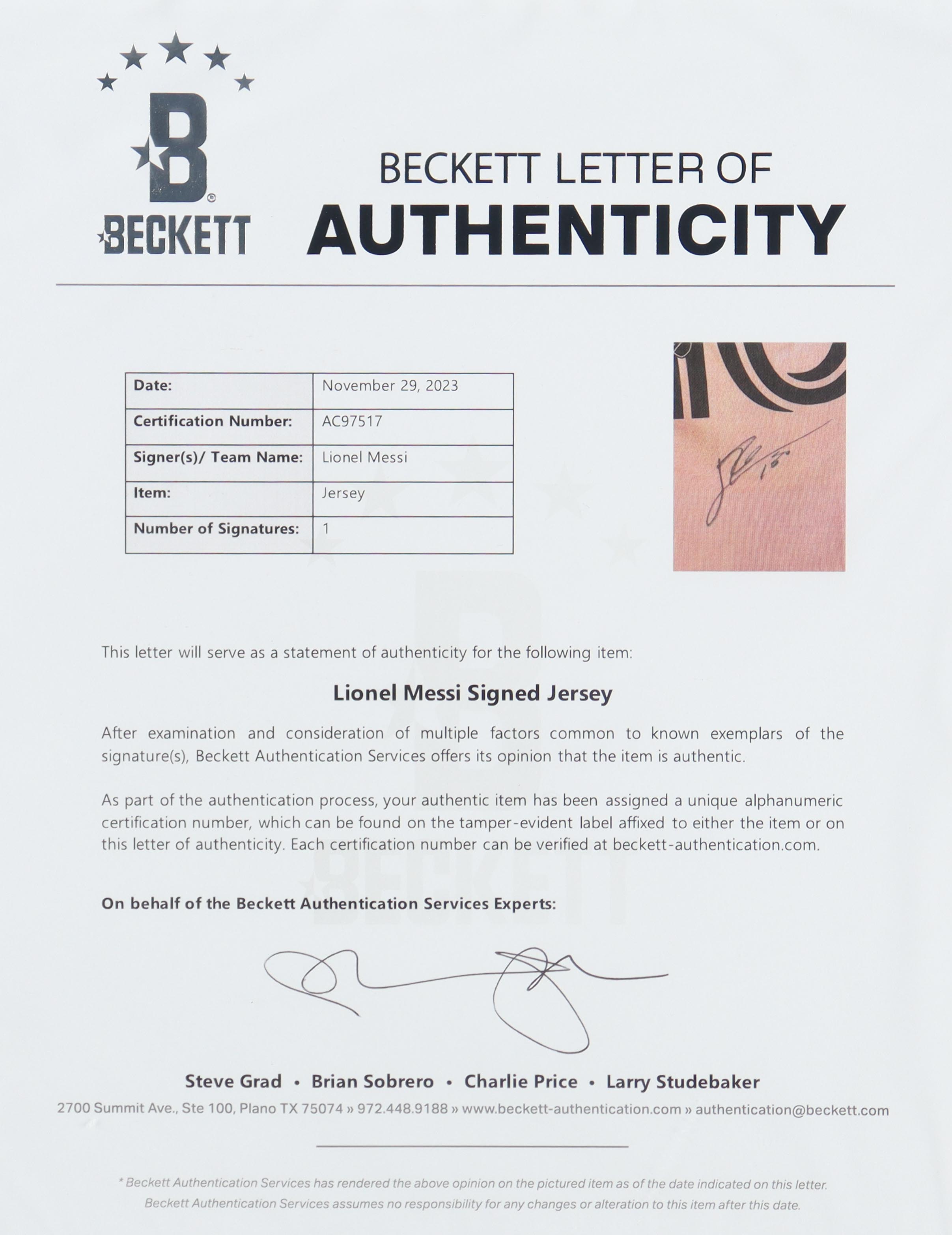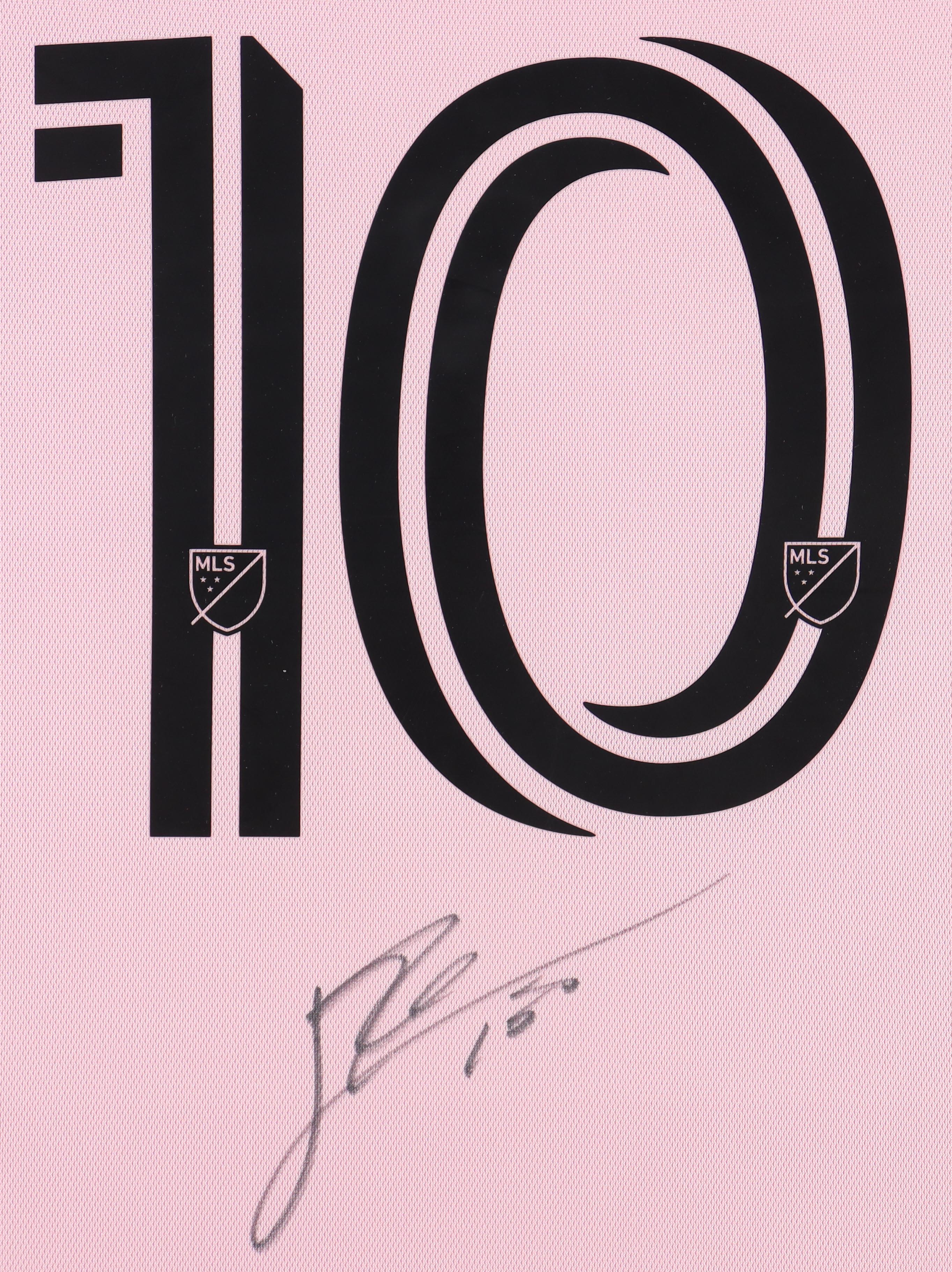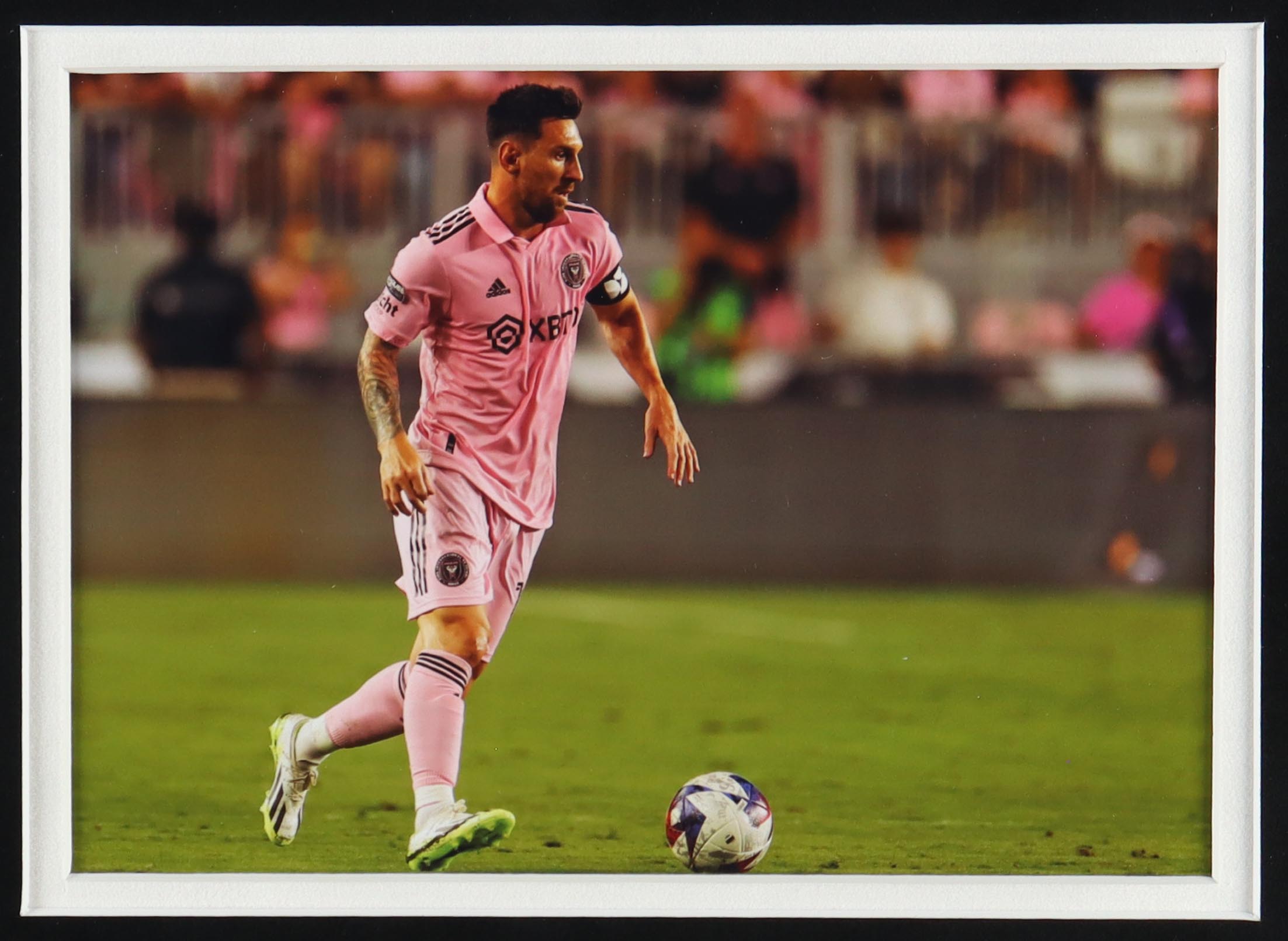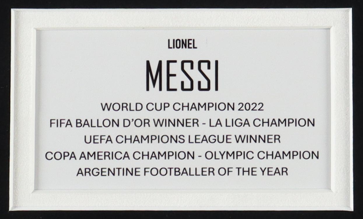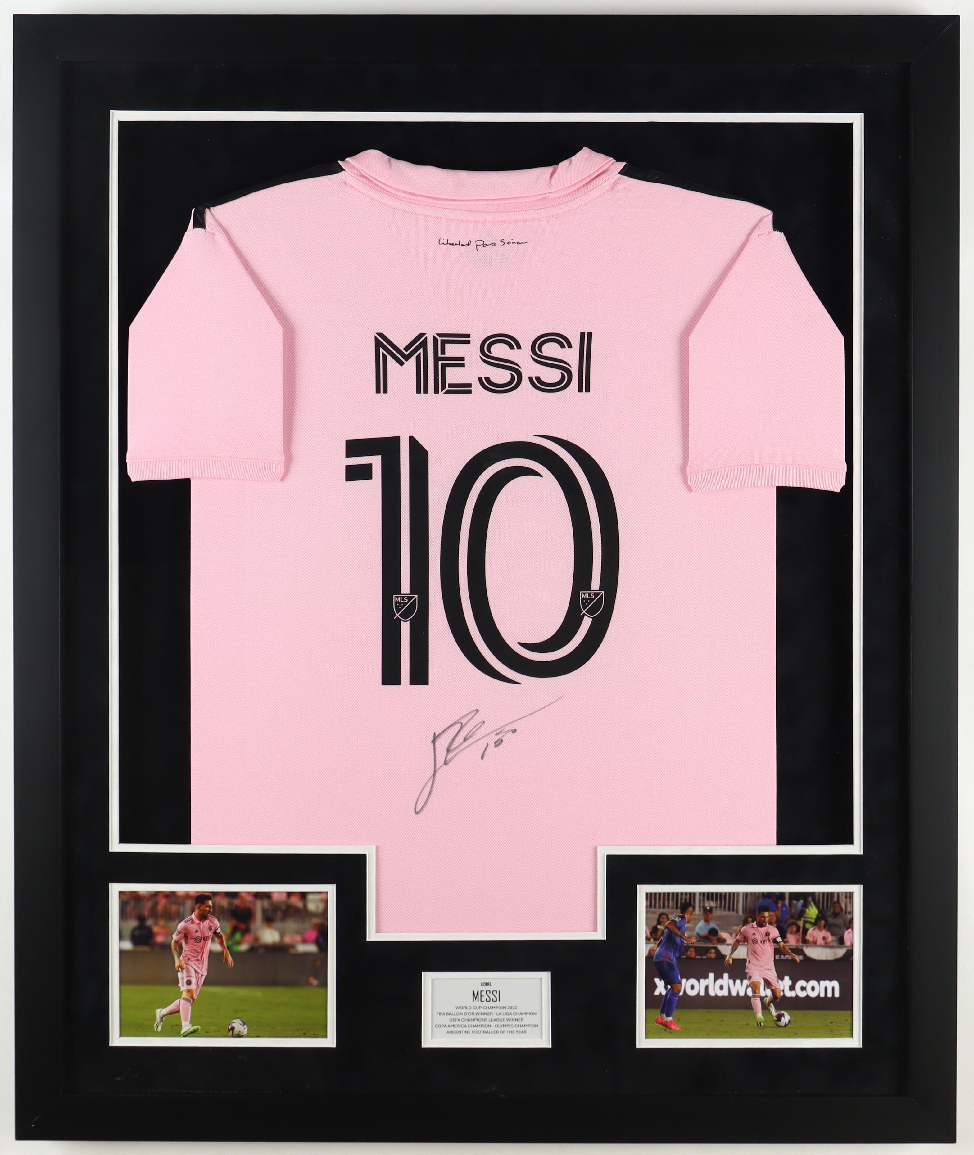 Custom frame measures 31" x 36" in size and features a jersey that has been hand-signed by Lionel Messi.