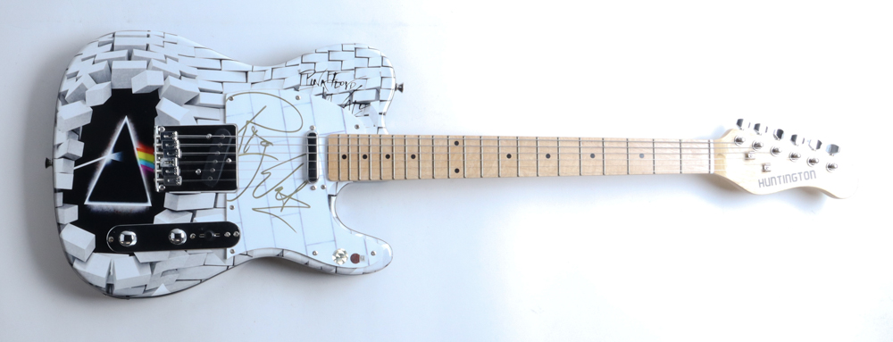 Custom electric Huntington Full-size electric guitar measures approximately 40" in length and is hand-signed on the pick guard by Roger Waters.