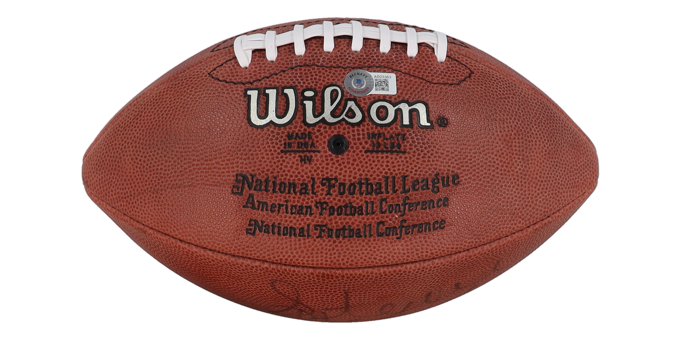 Wilson Official NFL football has been hand-signed by Steve McNair (D. 2009, Baltimore Ravens).