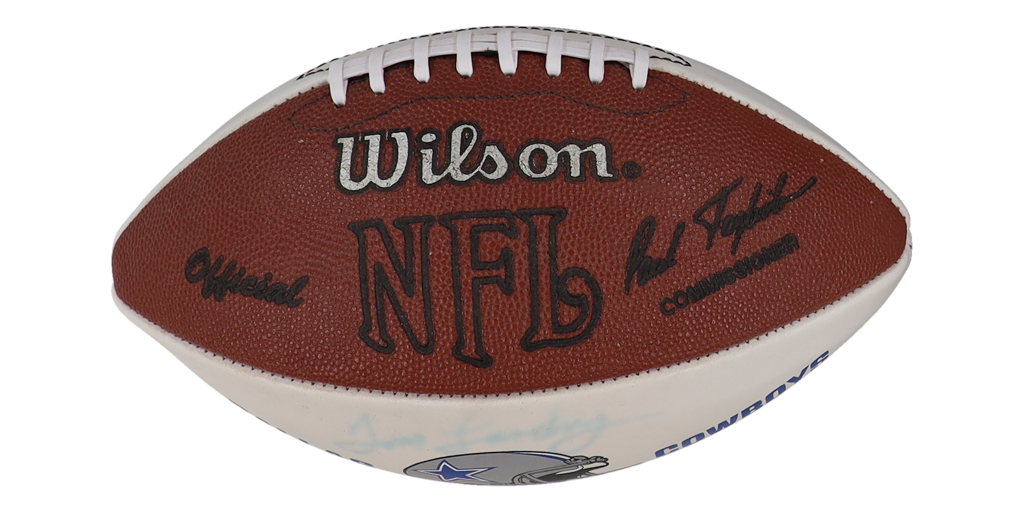 Dallas Cowboys logo football. Hand-signed by Tom Landry (D. 2000, HOF) and Roger Staubach (HOF).