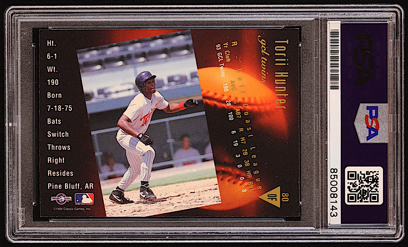 Torii Hunter Signed 1994 Classic/Best Gold #80 RC (PSA)