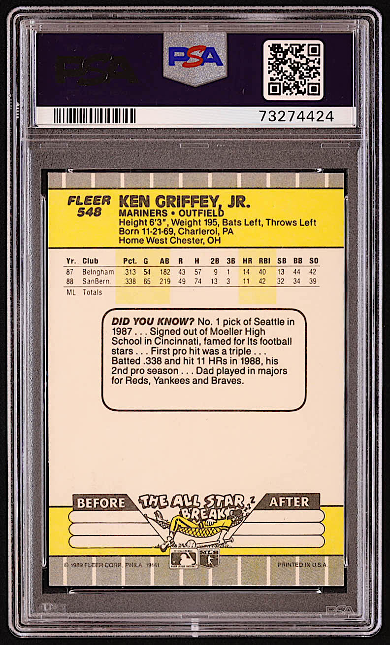 Ken Griffey Jr. 1989 Fleer #548 RC (PSA 9)