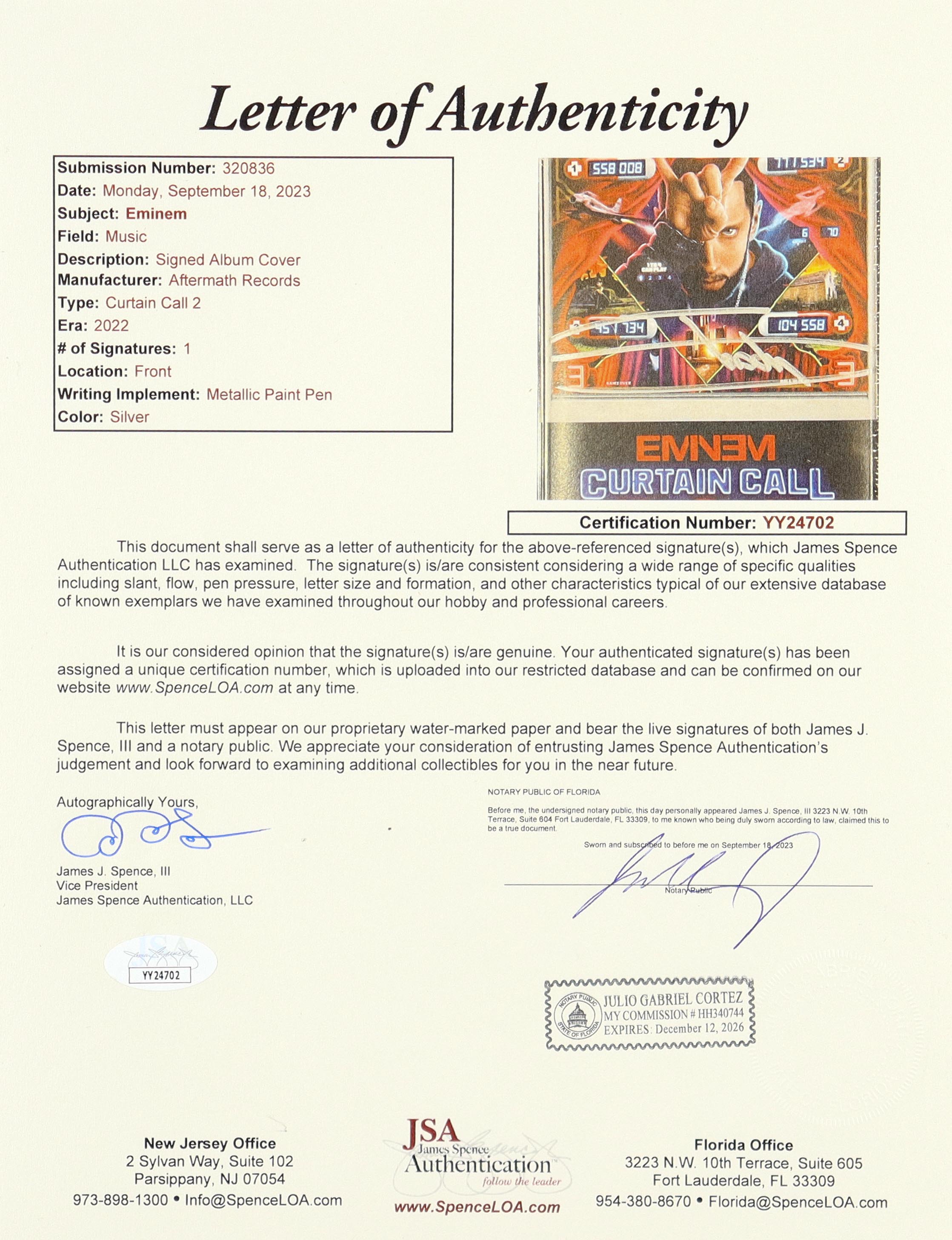The autograph(s) includes an official James Spence Authentication (JSA) hologram and matching LOA for authenticity purposes.