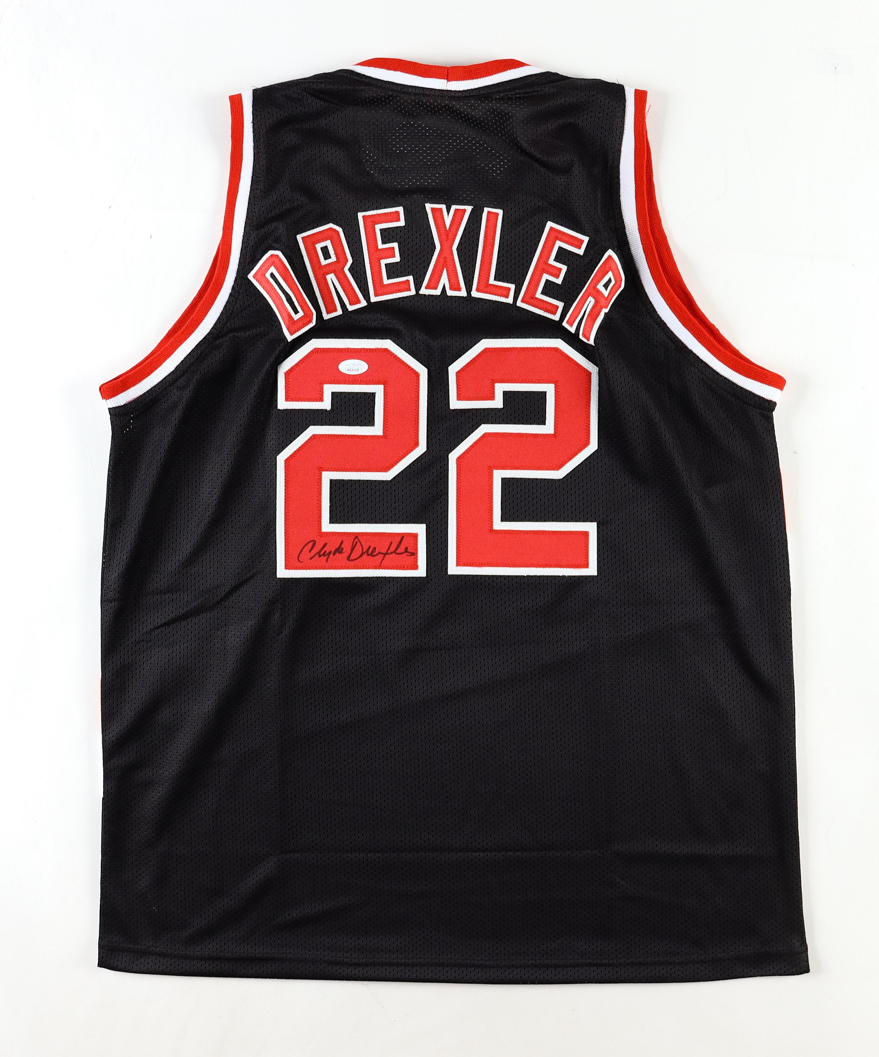 Custom jersey. Everything sewn on, size XL. Hand-signed by Clyde Drexler (HOF).