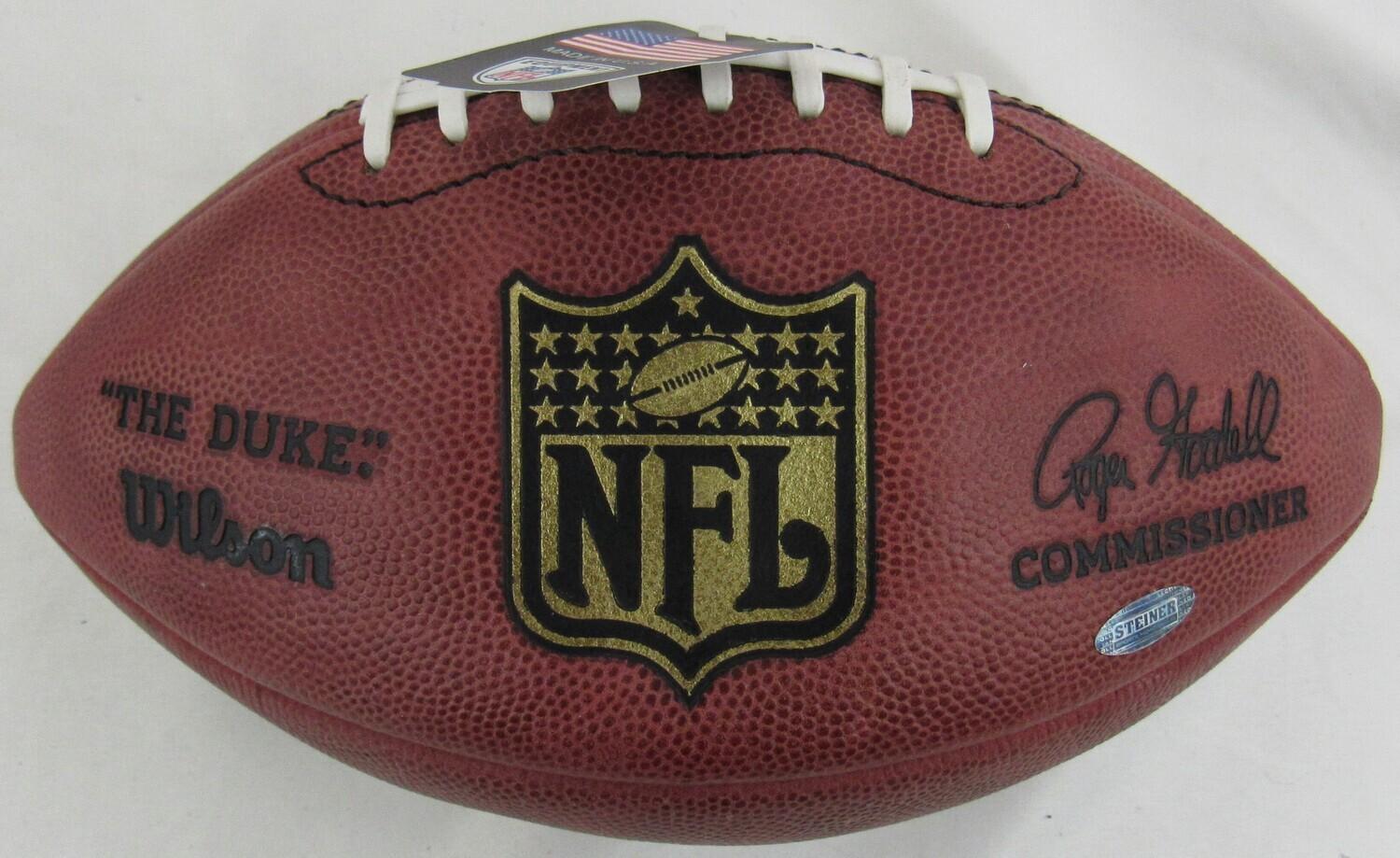 Wilson Official "The Duke" NFL Logo Game Ball Football has been hand-signed by Terry Bradshaw (Pittsburgh Steelers, HOF). Please note, the football no longer holds air though it retains its original shape.