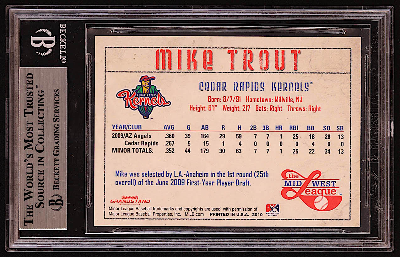 Mike Trout Signed 2010 Midwest League Prospects Grandstand #30 RC (BGS)