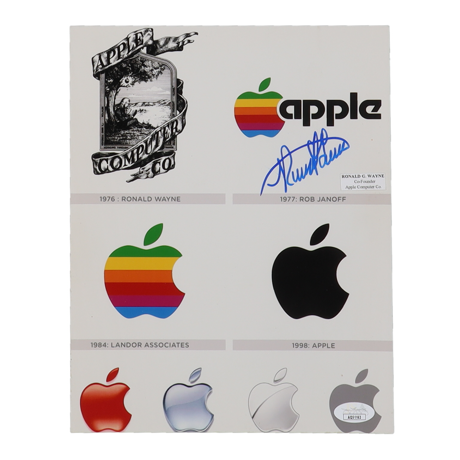 Ronald Wayne Signed Apple 8x10 Photo (JSA)