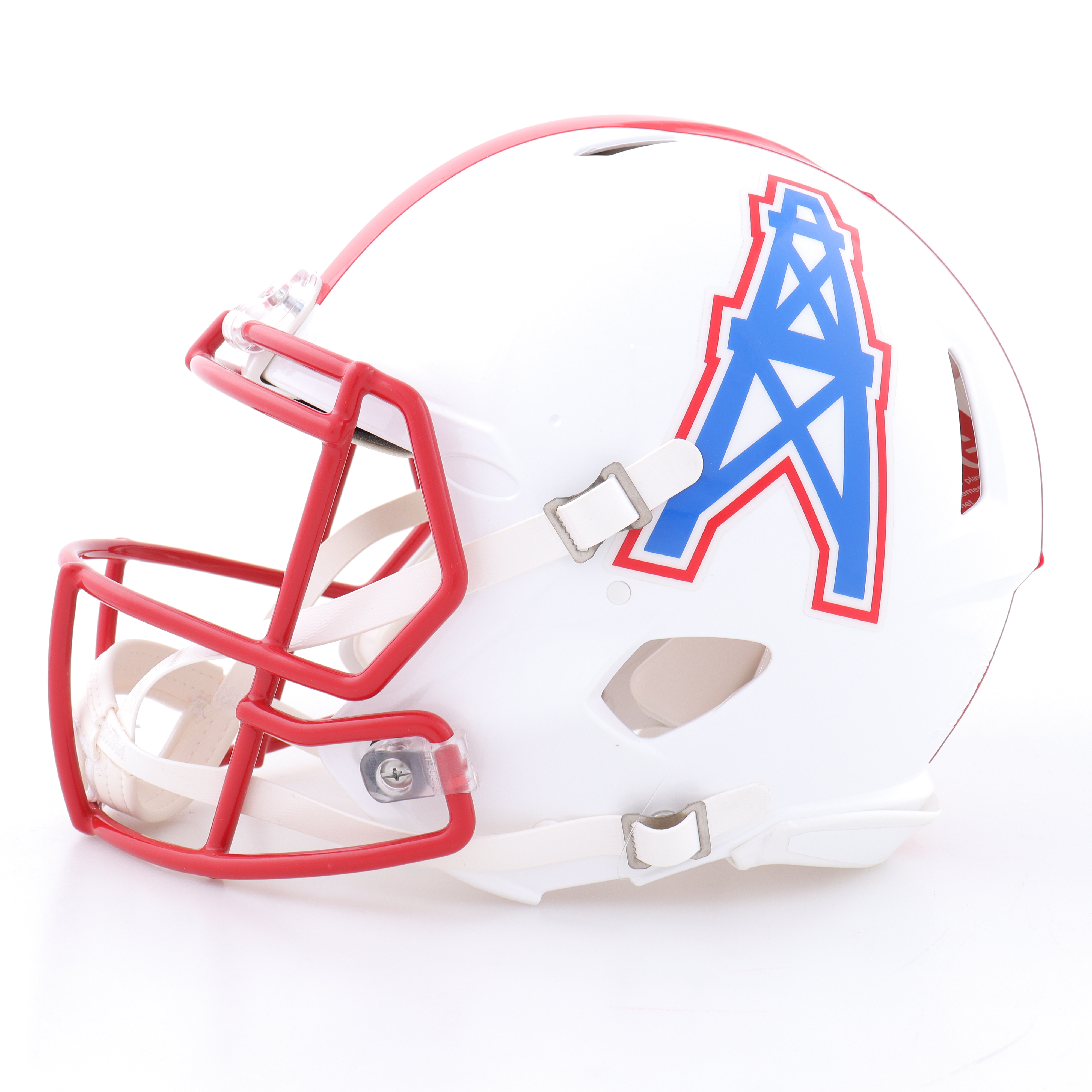 Riddell Houston Oilers full-size authentic speed helmet. Hand-signed and inscribed by Warren Moon (HOF).