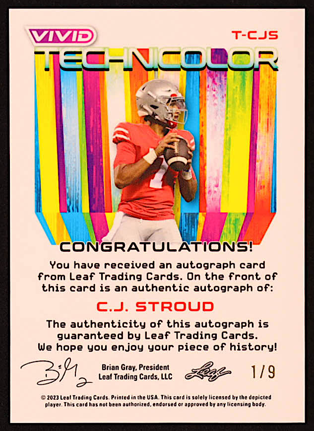 CJ Stroud 2023 Leaf Vivid TechniColor Autographs Crystals Silver #TCJS RC #1/9