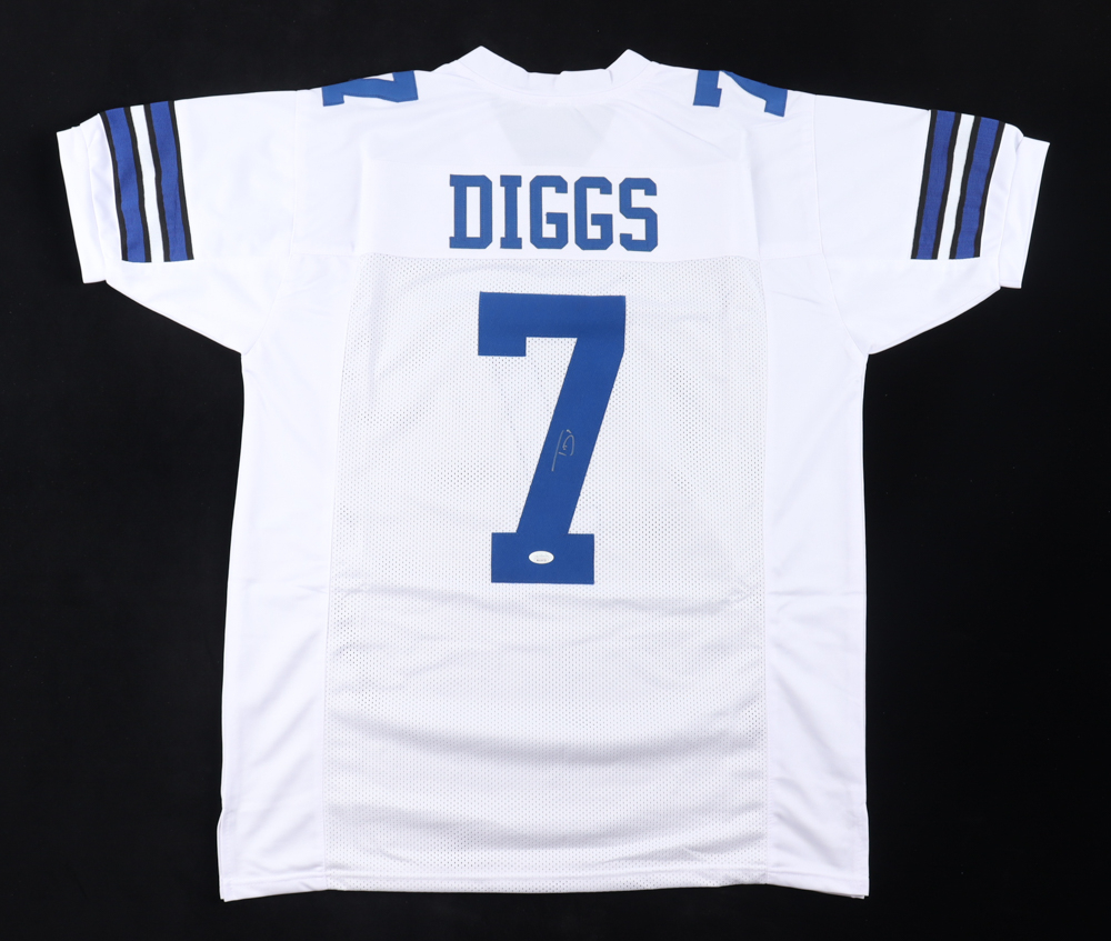 Custom Jersey with everything sewn on, size XL. Hand-signed by Trevon Diggs.