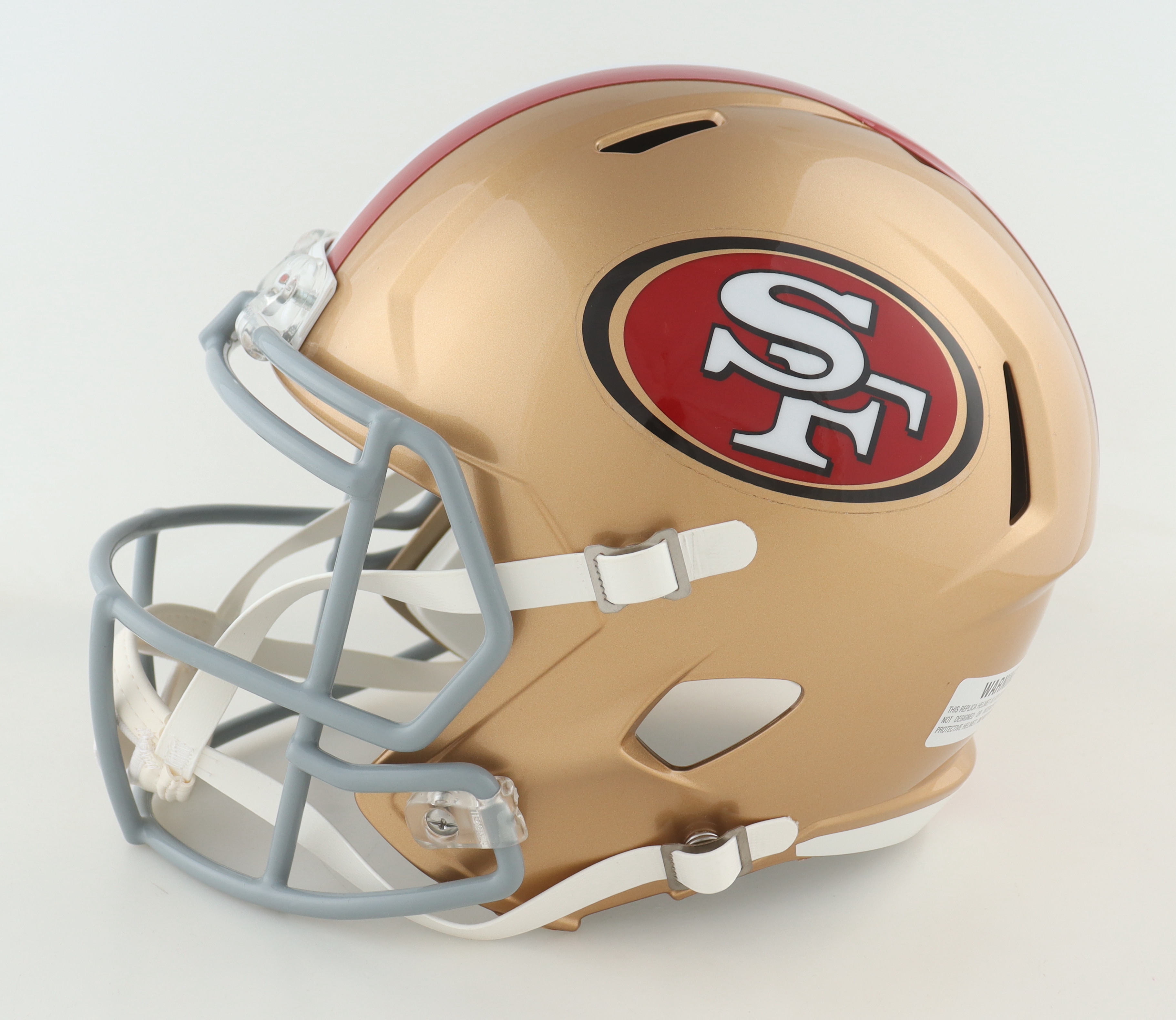 Riddell San Francisco 49ers full-size replica speed helmet. Hand-signed by Fred Warner and Dre Greenlaw.