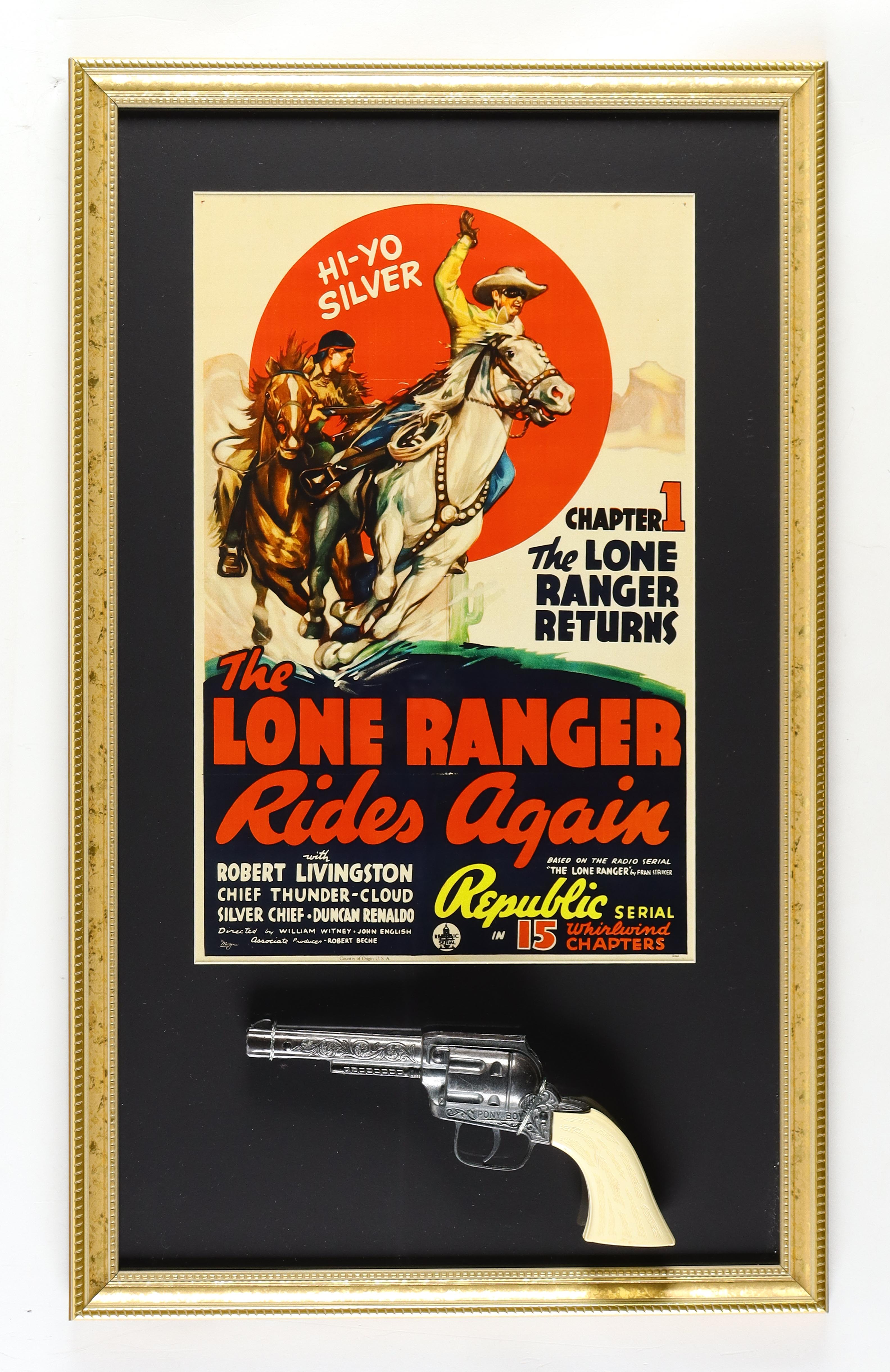 "The Lone Ranger Rides Again" Custom Framed Poster Display With Vintage Replica Metal Six-Shooter Pistol