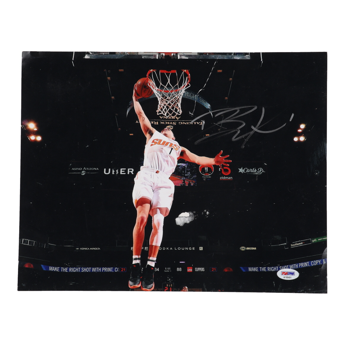 Photo measures 11" x 14" in size and has been hand-signed by Devin Booker (Phoenix Suns).