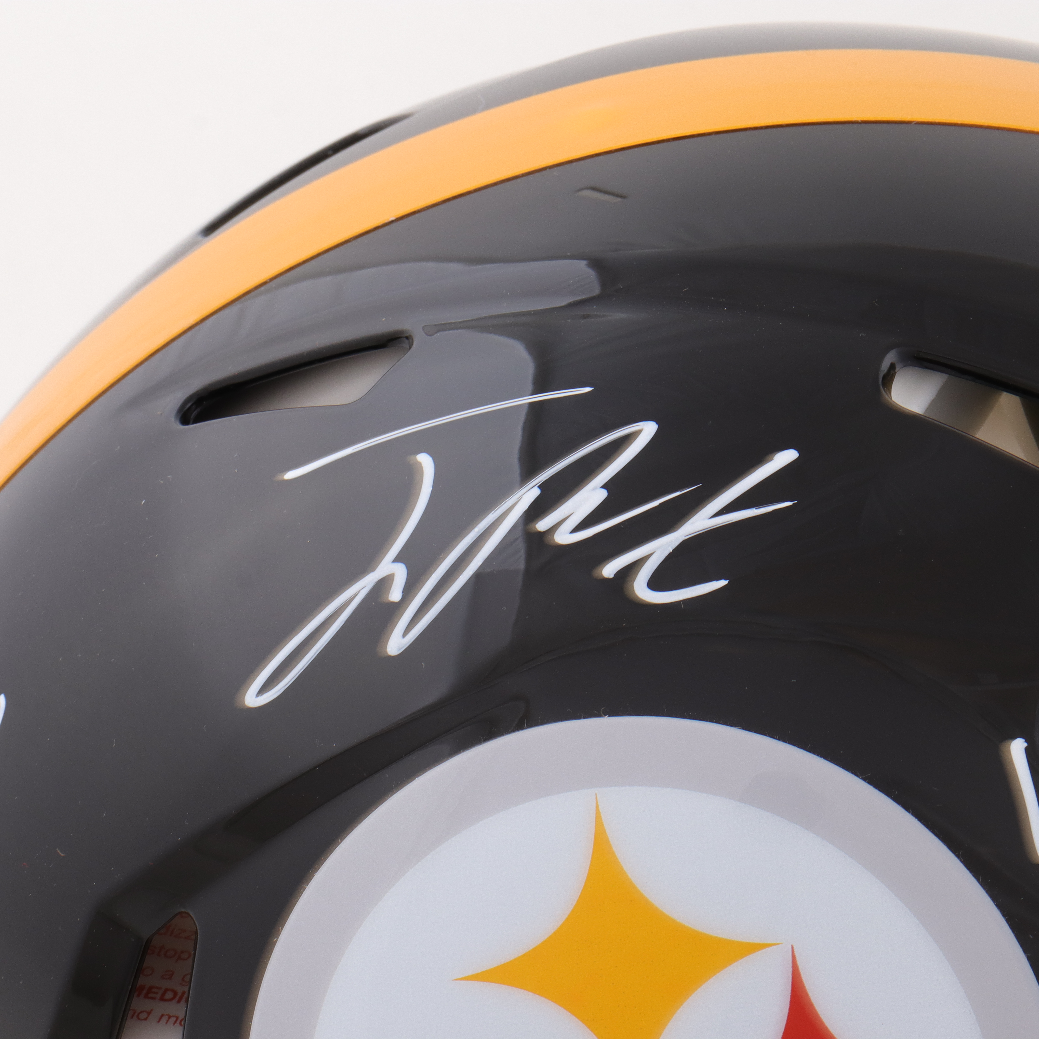 Riddell Pittsburgh Steelers full-size authentic on-field speed helmet. Hand-signed and inscribed by Joey Porter Jr.