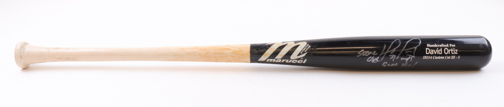 Marucci player model JB5 Custom Cut baseball bat. Hand-signed and inscribed by David Ortiz (Boston Red Sox, HOF). Please note, there is some scuffing and smudging on the autograph and inscription.