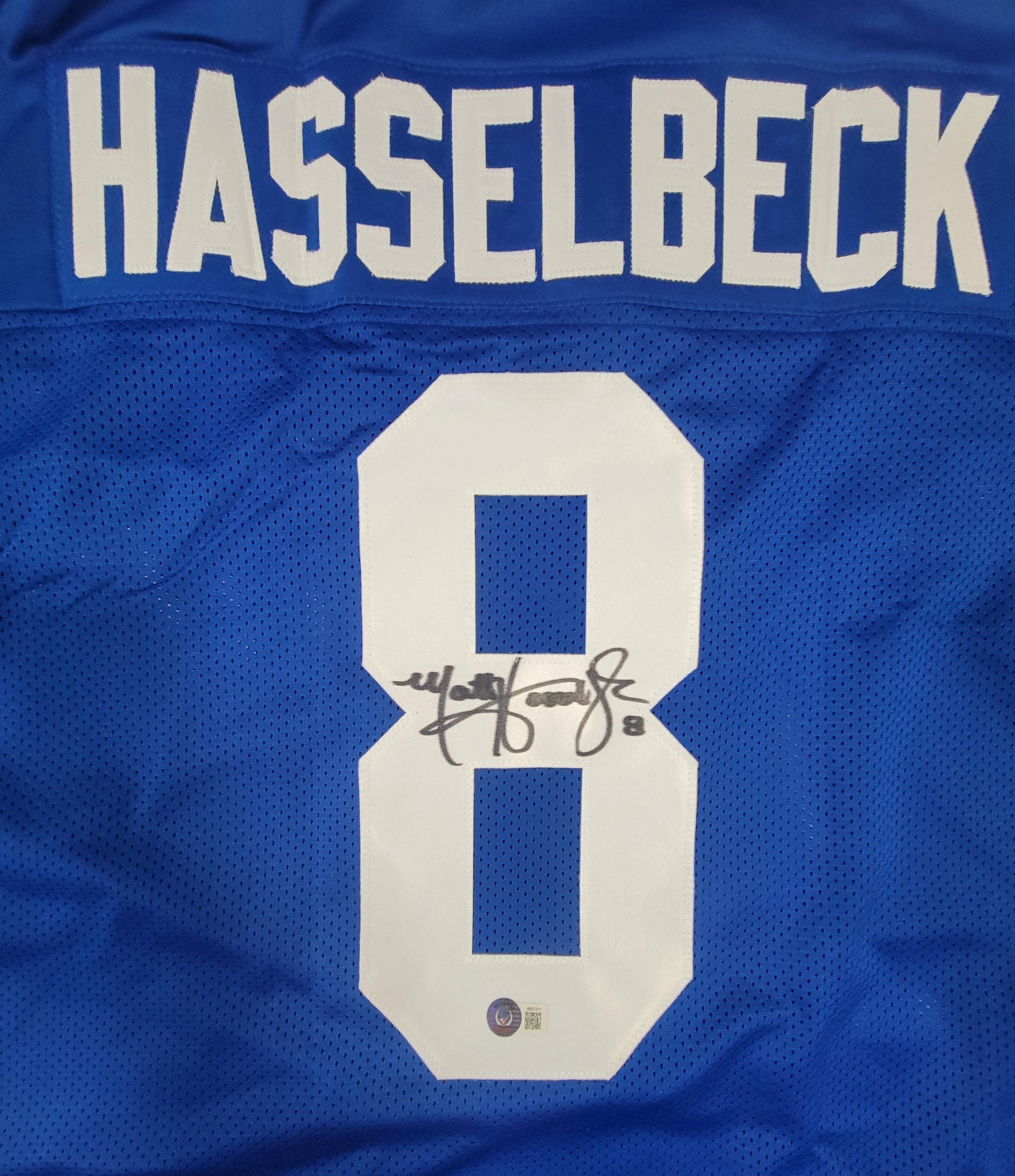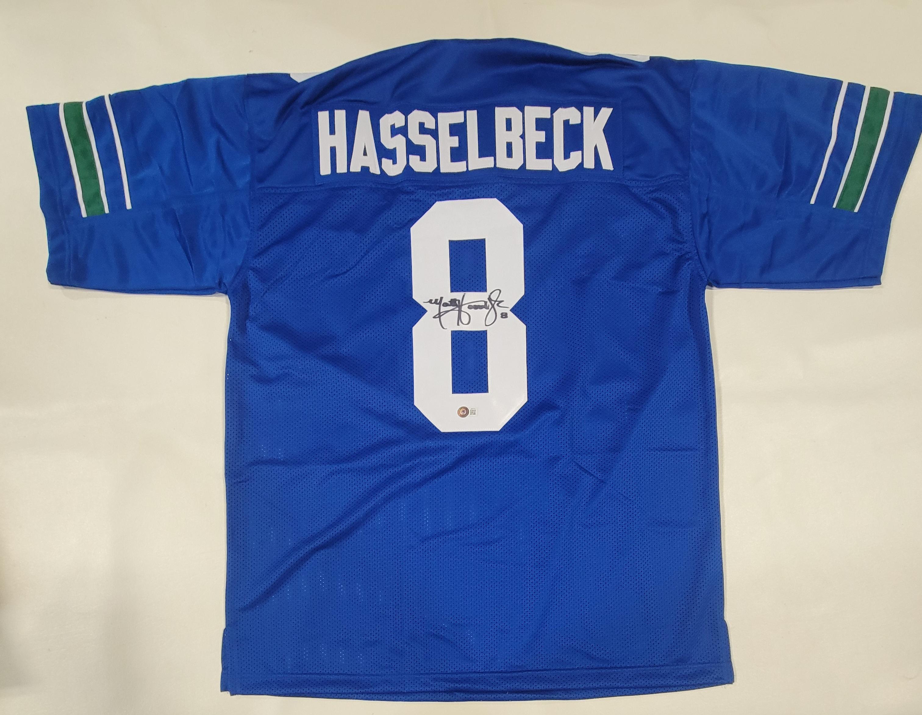 Custom jersey with everything sewn on, size XL. Hand-signed by Matt Hasselbeck.