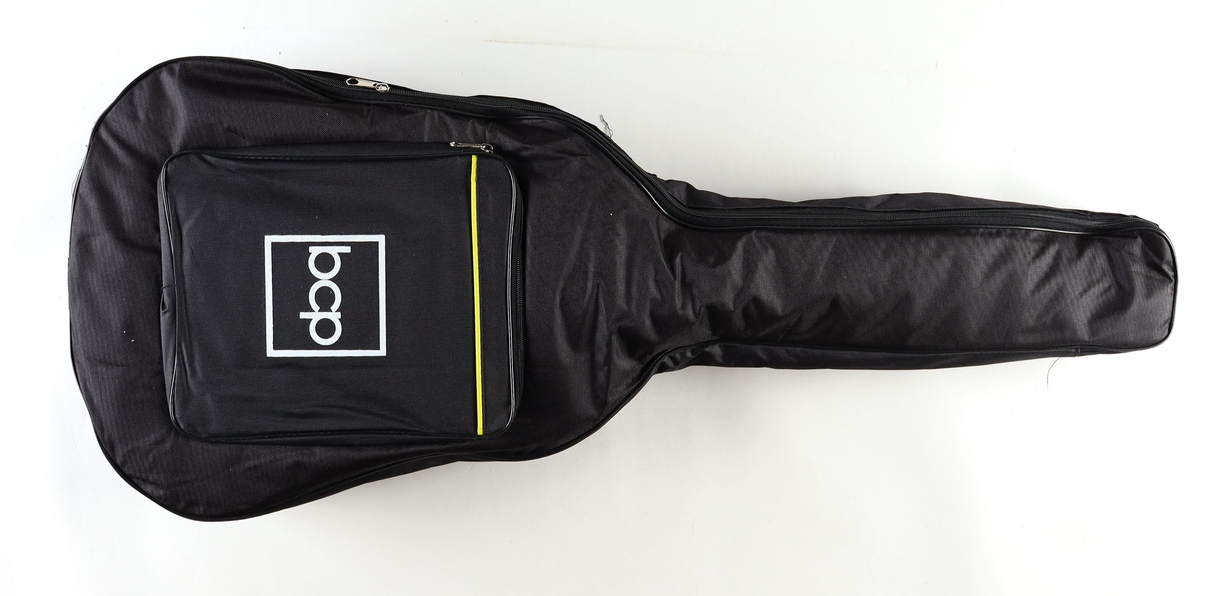 Acoustic guitar measures approximately 38" in length and has been hand-signed on a CD cover that has been repurposed as a pick-guard by Taylor Swift.