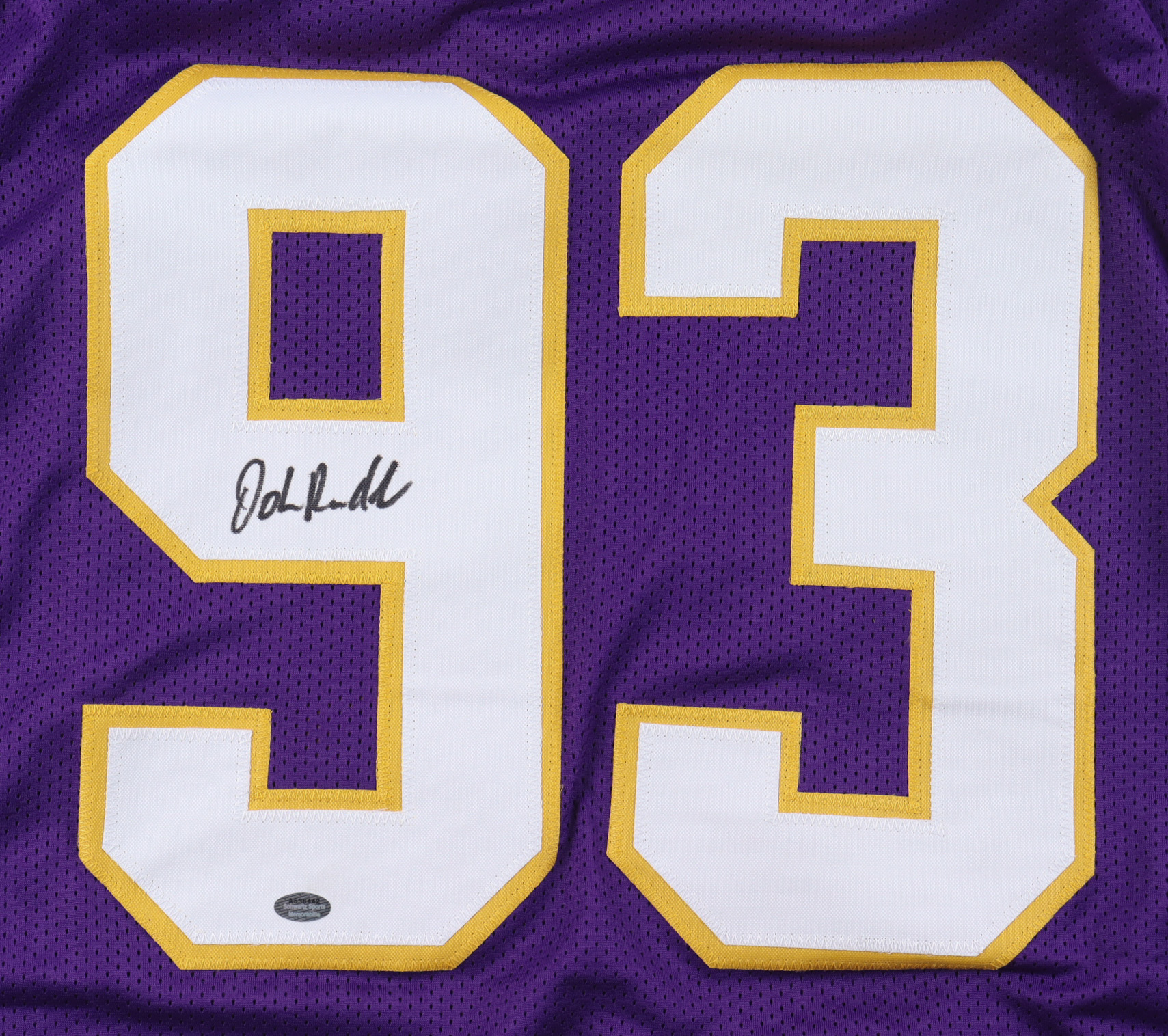 Custom jersey with everything sewn on, size XL. Hand-signed by John Randle (HOF).
