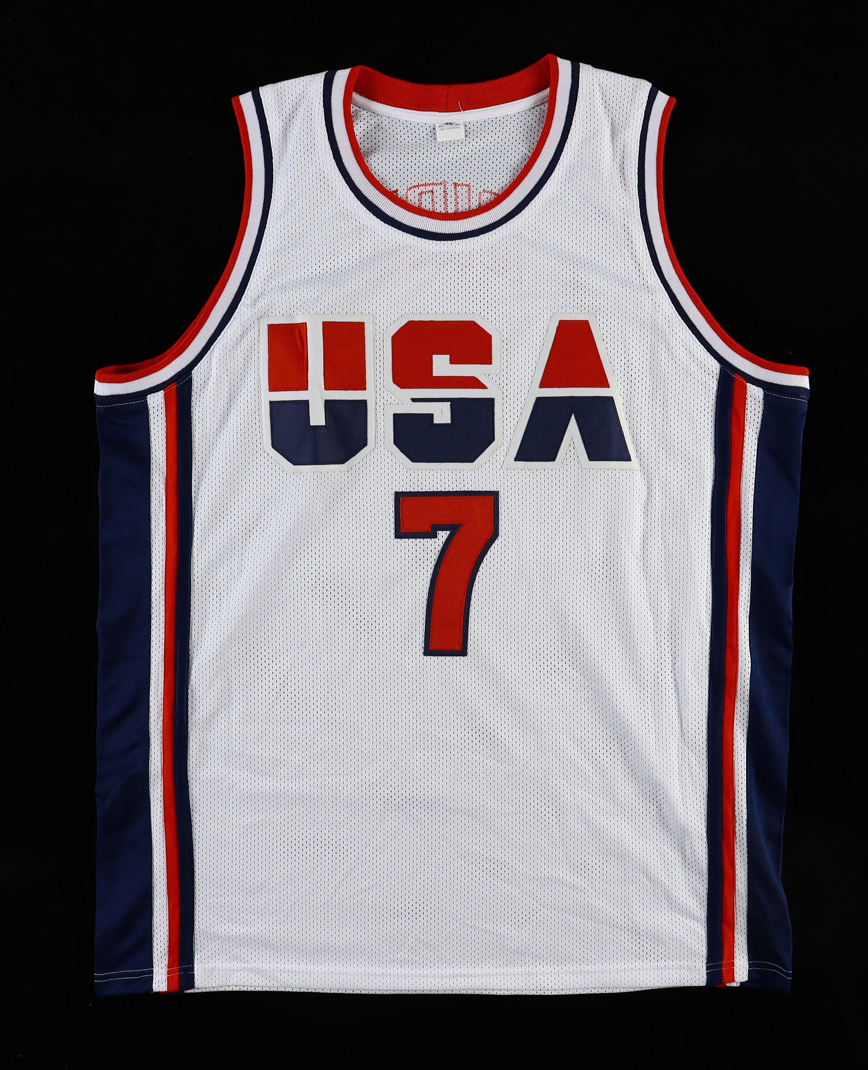 Custom jersey with everything sewn on, size XL. Hand-signed by Larry Bird (HOF).