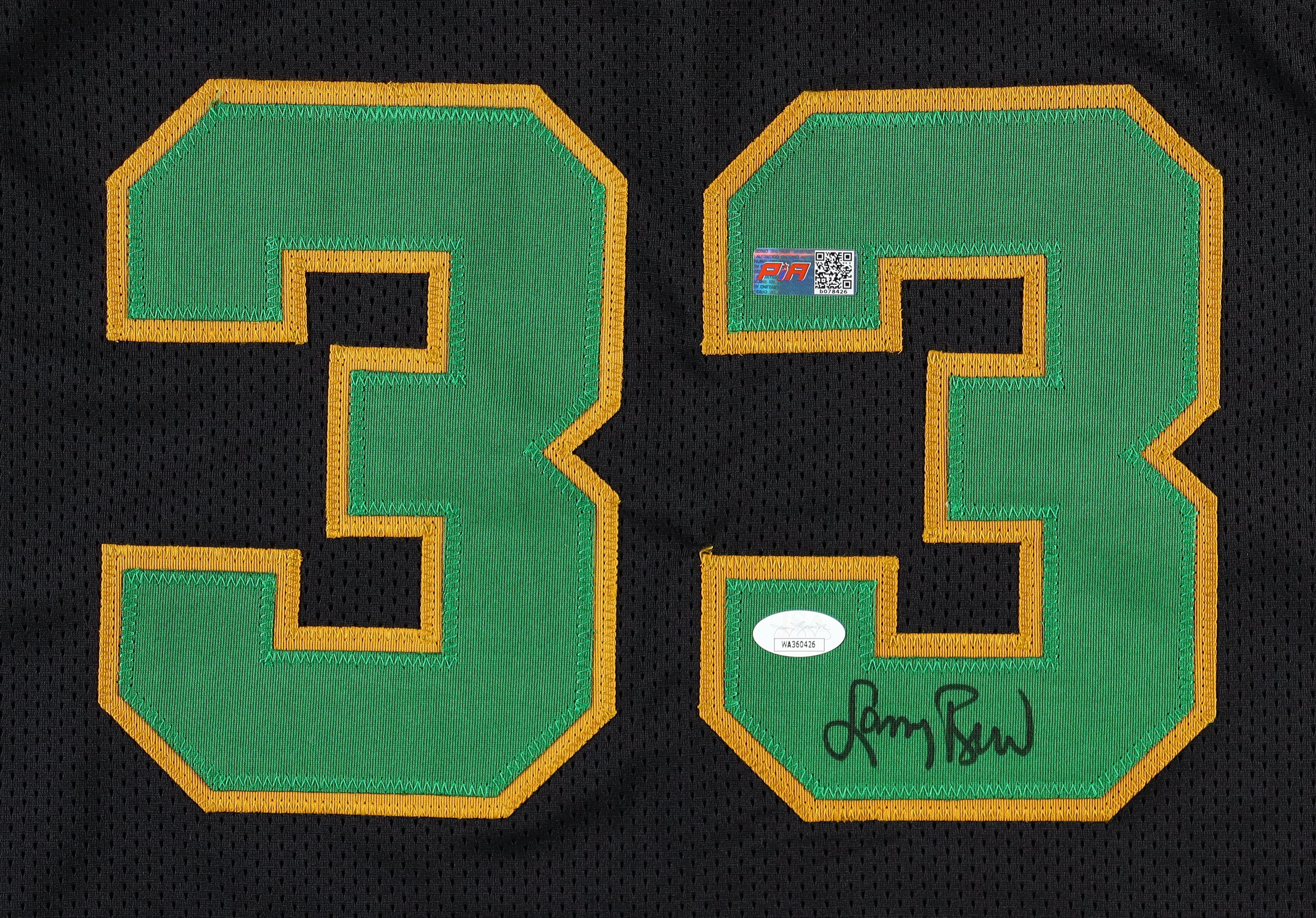Custom jersey. Everything is sewn on, size XL. Hand-signed by Larry Bird (HOF).