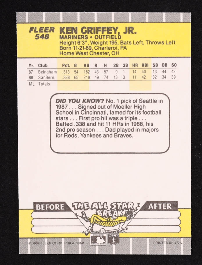 Ken Griffey Jr. 1989 Fleer #548 RC