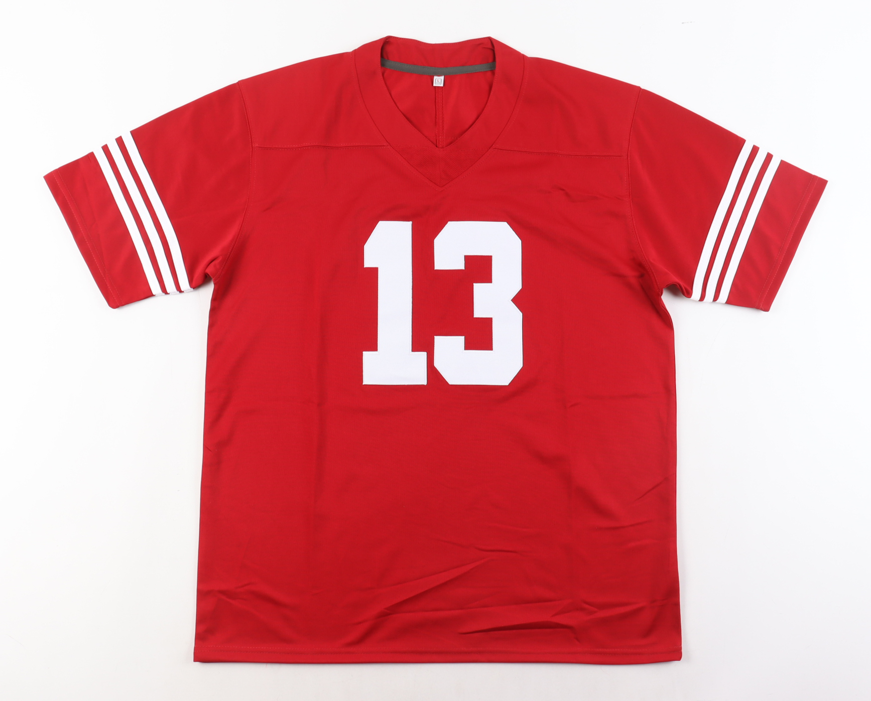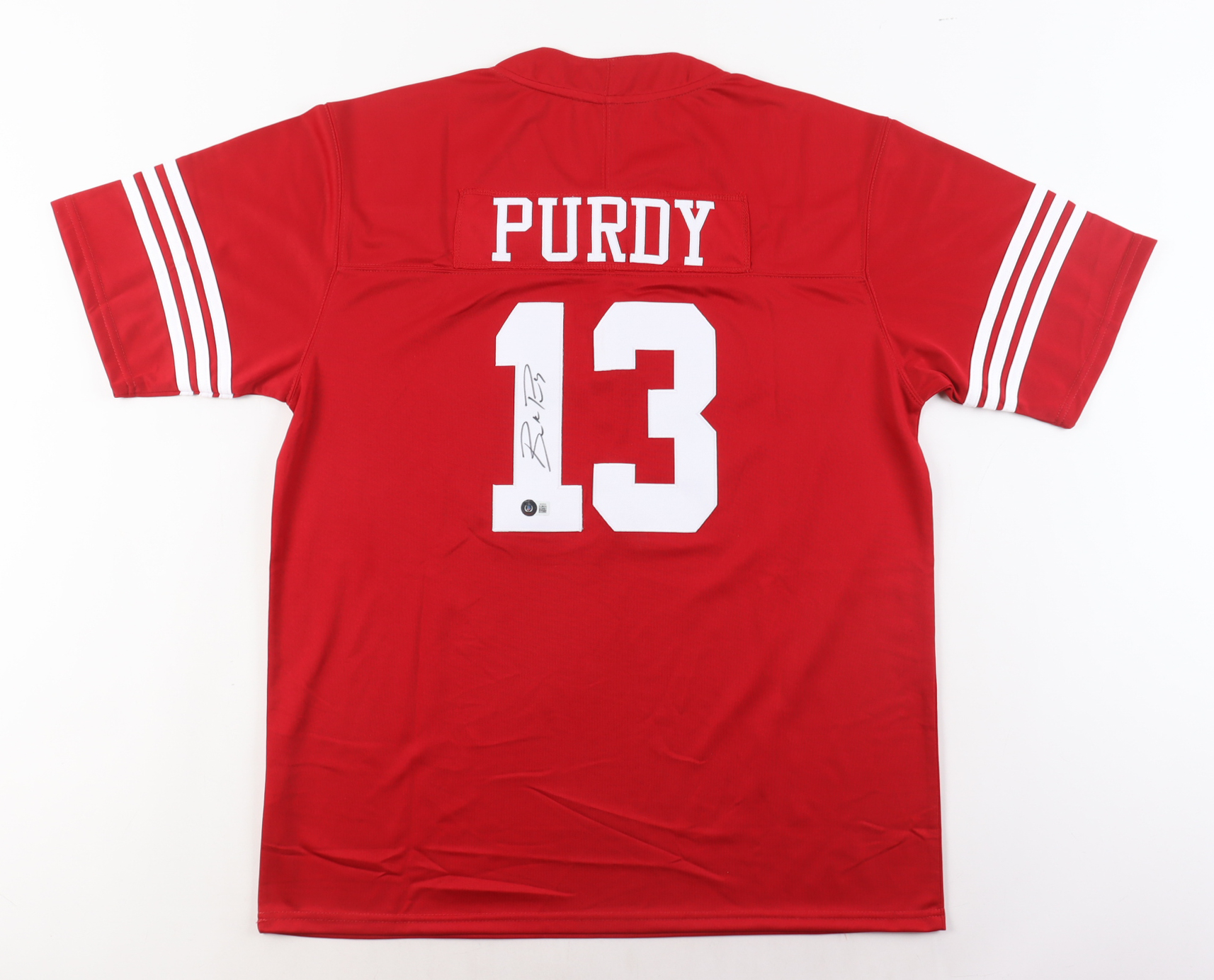 Custom jersey with everything sewn on, size L. Hand-signed by Brock Purdy.
