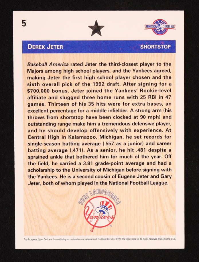 Derek Jeter 1992 Upper Deck Minors #5 FDP RC