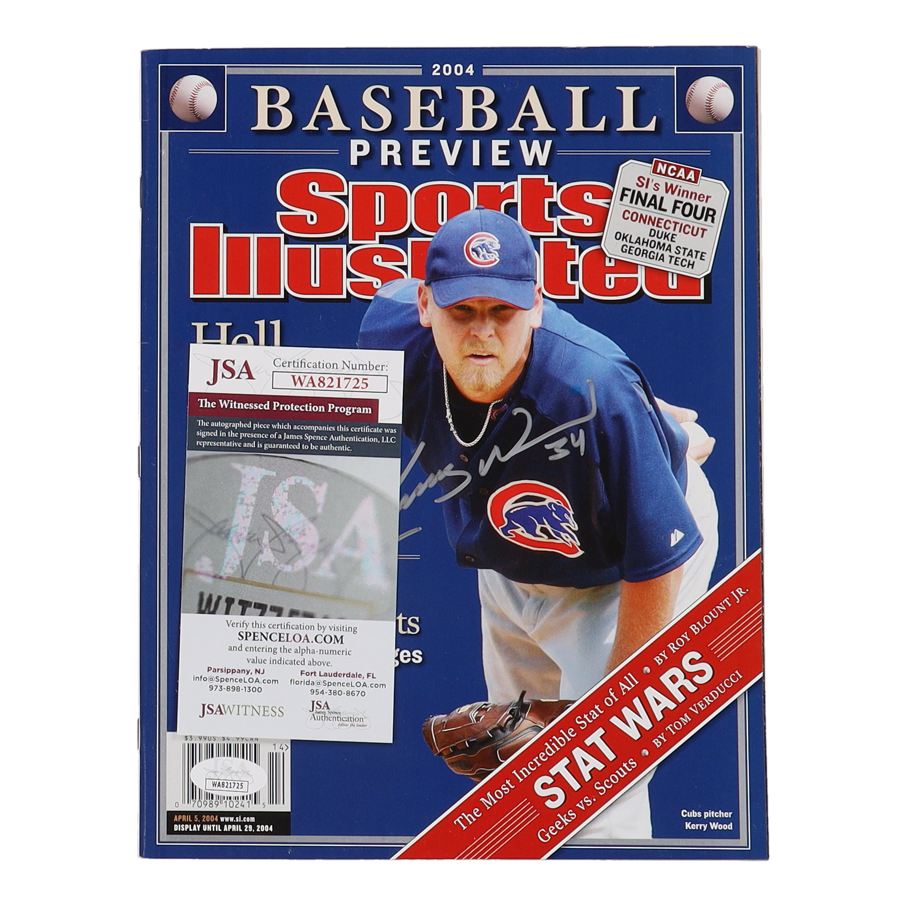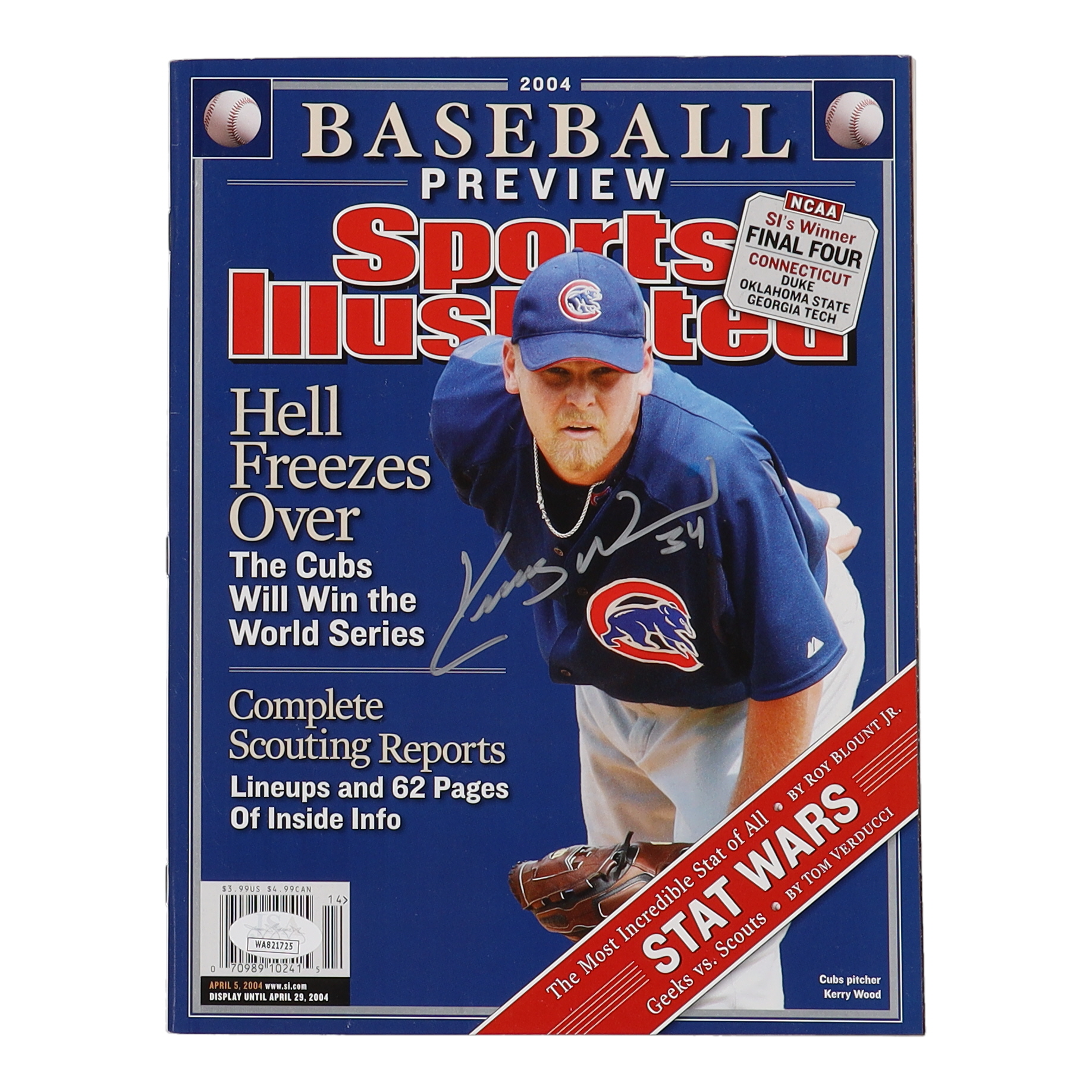 Magazine dated 2004 has been hand-signed by Kerry Wood (Chicago Cubs).