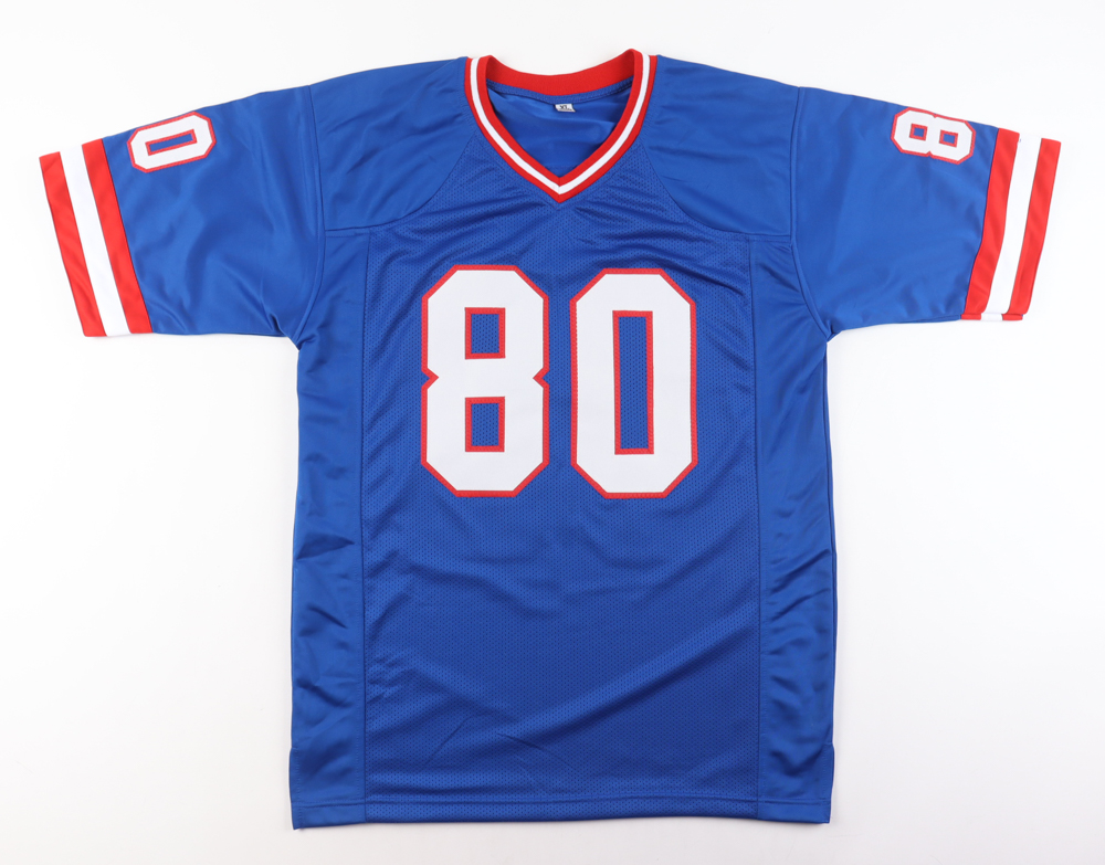 Custom jersey with everything sewn on, size XL. Hand-signed by Jeremy Shockey.