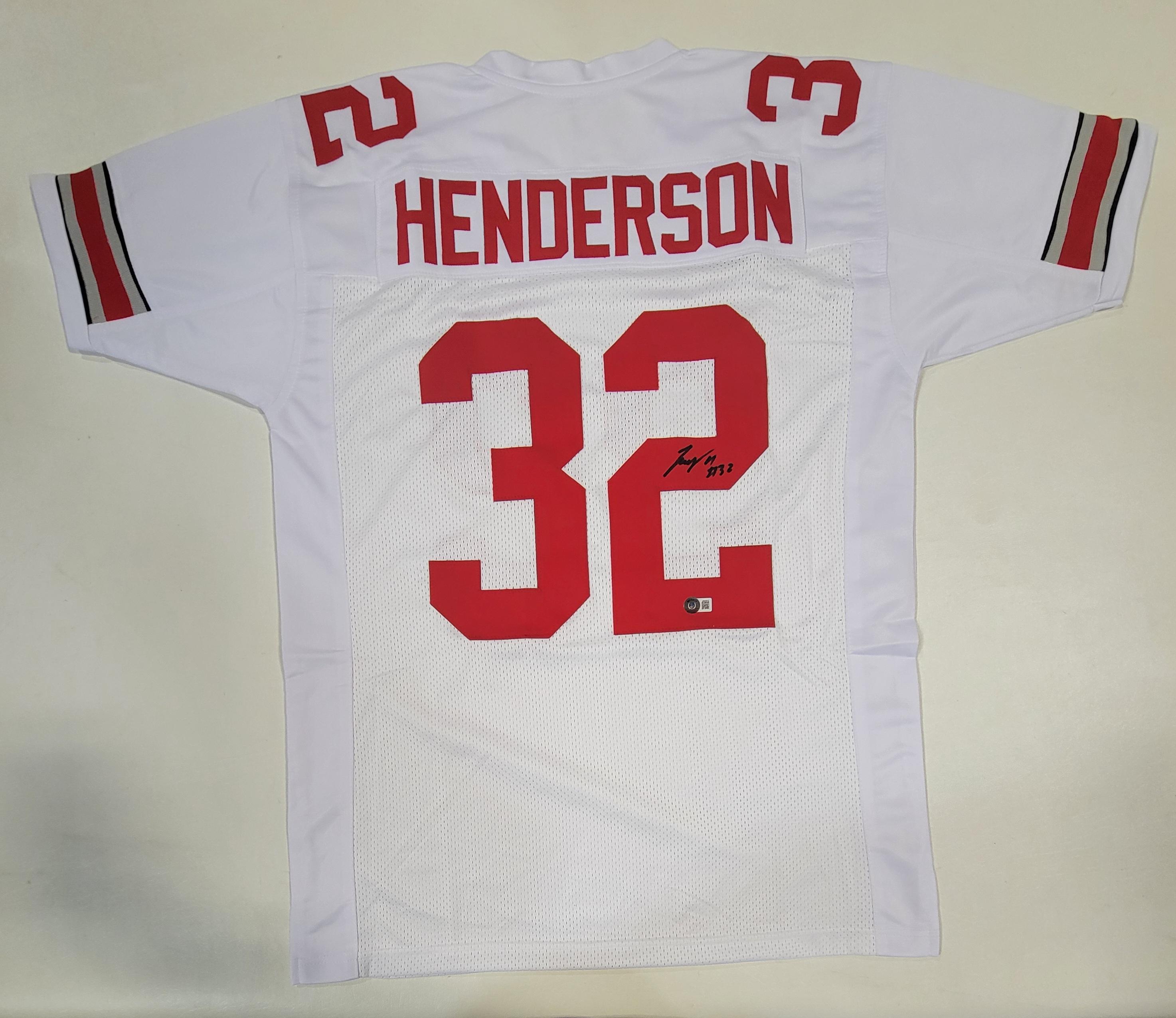 Custom jersey with everything sewn on, size XL. Hand-signed by TreVeyon Henderson.