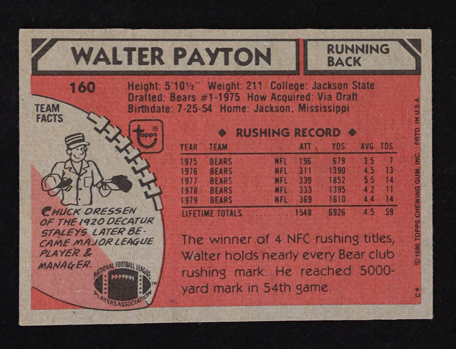 Walter Payton 1980 Topps #160 AP