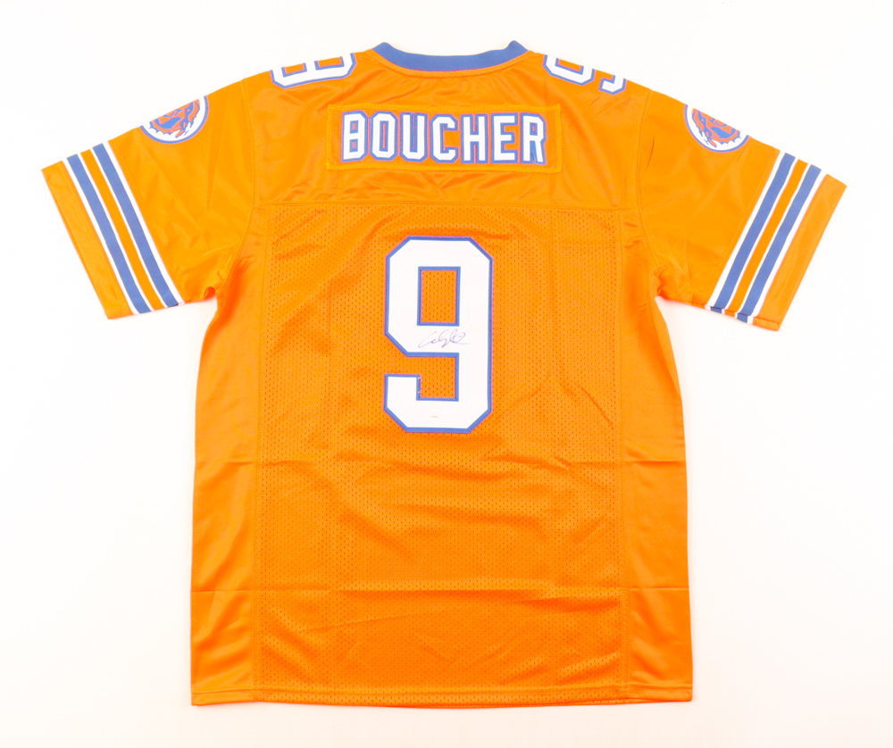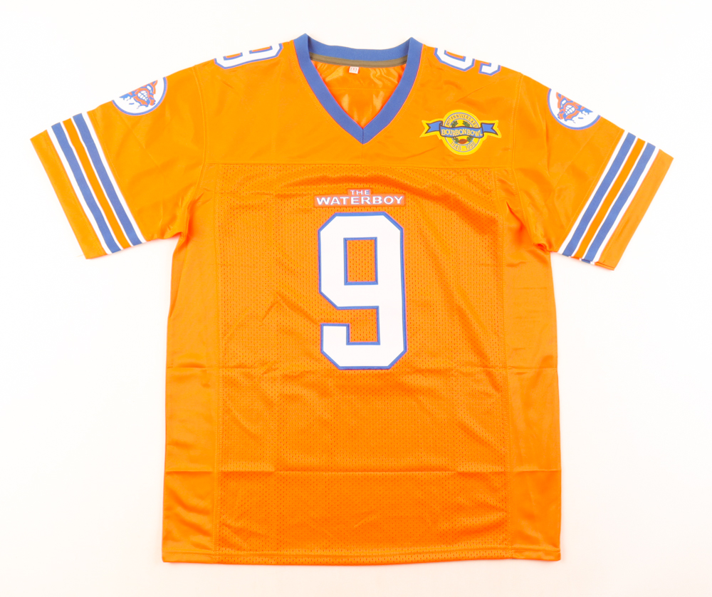 Custom football jersey. Everything sewn on, size S. Hand-signed by Adam Sandler (Bobby Boucher).