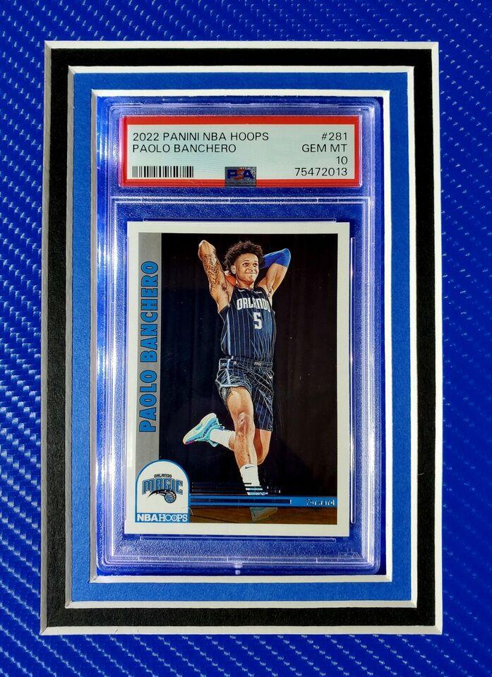 Paolo Banchero Signed Magic Custom Framed LED Backlit Nike Jersey Display with 2022-23 Hoops #281 RC (PSA 10) & 2022-23 Panini Contenders Rookie of the Year Contenders #1 RC (PSA 10) (Fanatics)