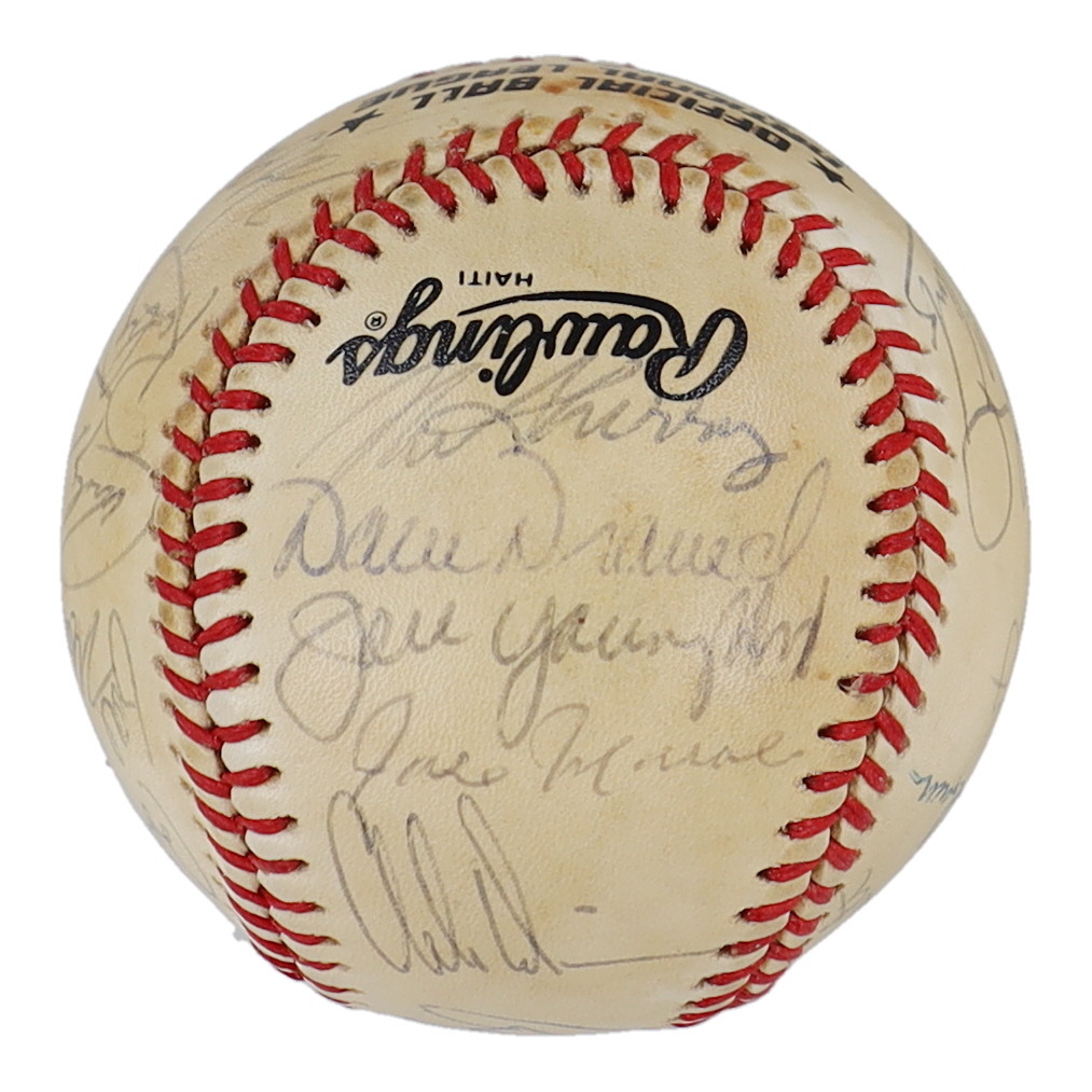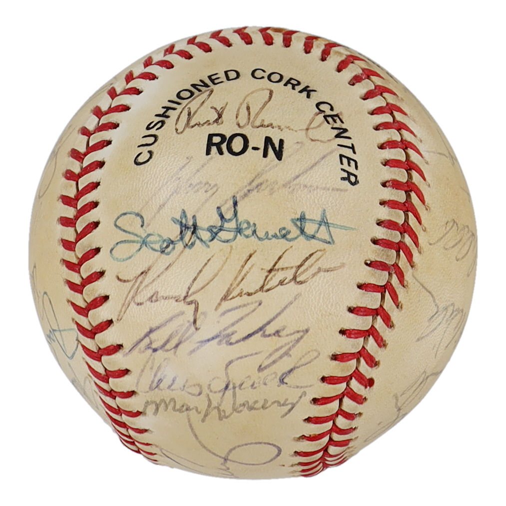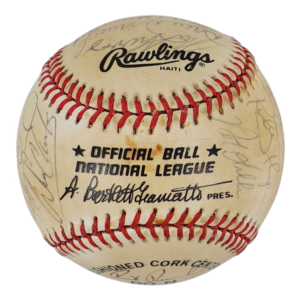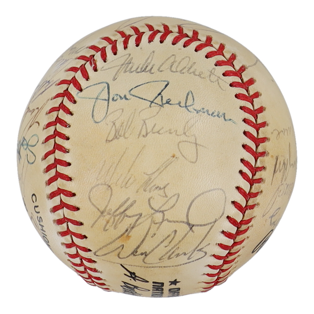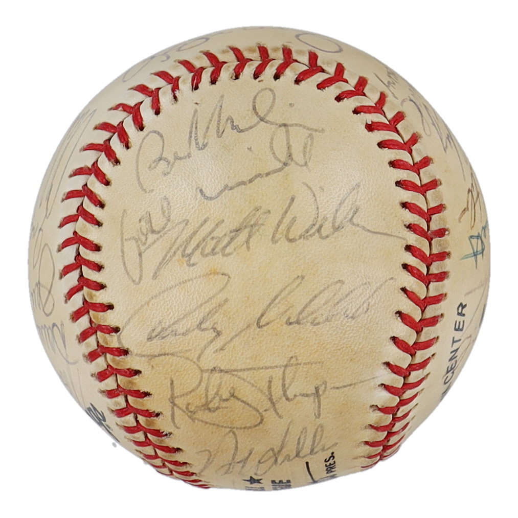Rawlings Official National League baseball. Hand-signed by (29) with Mike Aldrete, Mike Krukow, Bob Brenly, Mike LaCoss, Jeffrey Leonard, Will Clark, Bob Lillis, Robby Thompson, Candy Maldonado, Jose Uribe, Matt Williams, Bob Melvin, Norm Sherry, Dave Dravecky, Joel Youngblood, Chili Davis, Jose Morales, Rick Reuschel, Harry Spilman, Scott Garrelts, Randy Kutcher, Bill Fahey, Chris Speier, and Mark Wasinger.