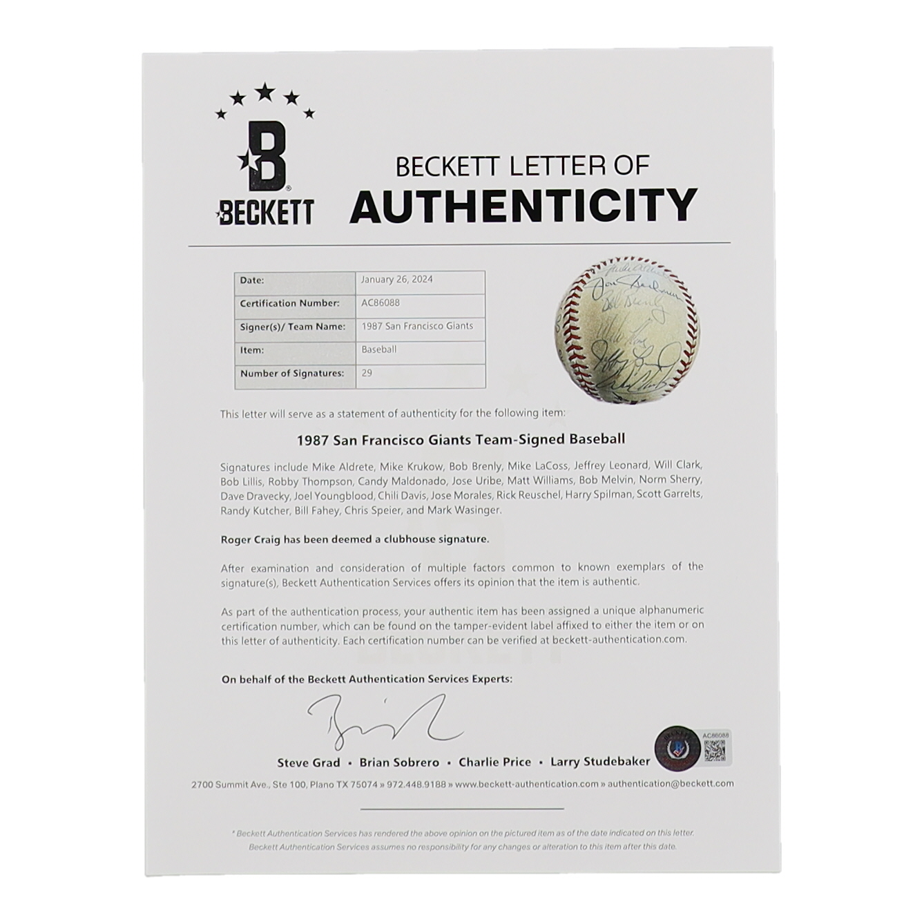 - Roger Craig's signature has been deemed the clubhouse version.