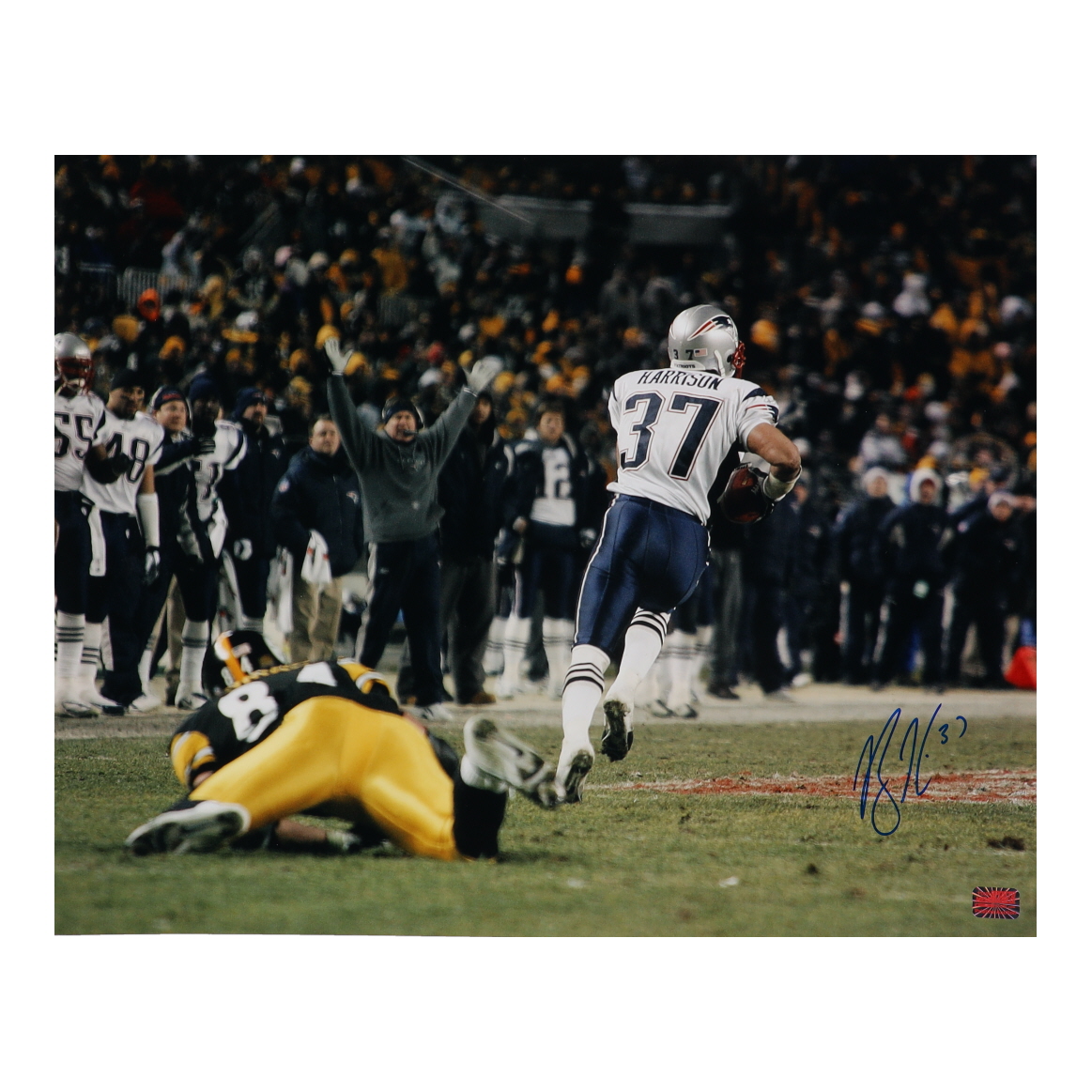 Photo measures 16" x 20" in size. Hand-signed by Rodney Harrison (New England Patriots).
