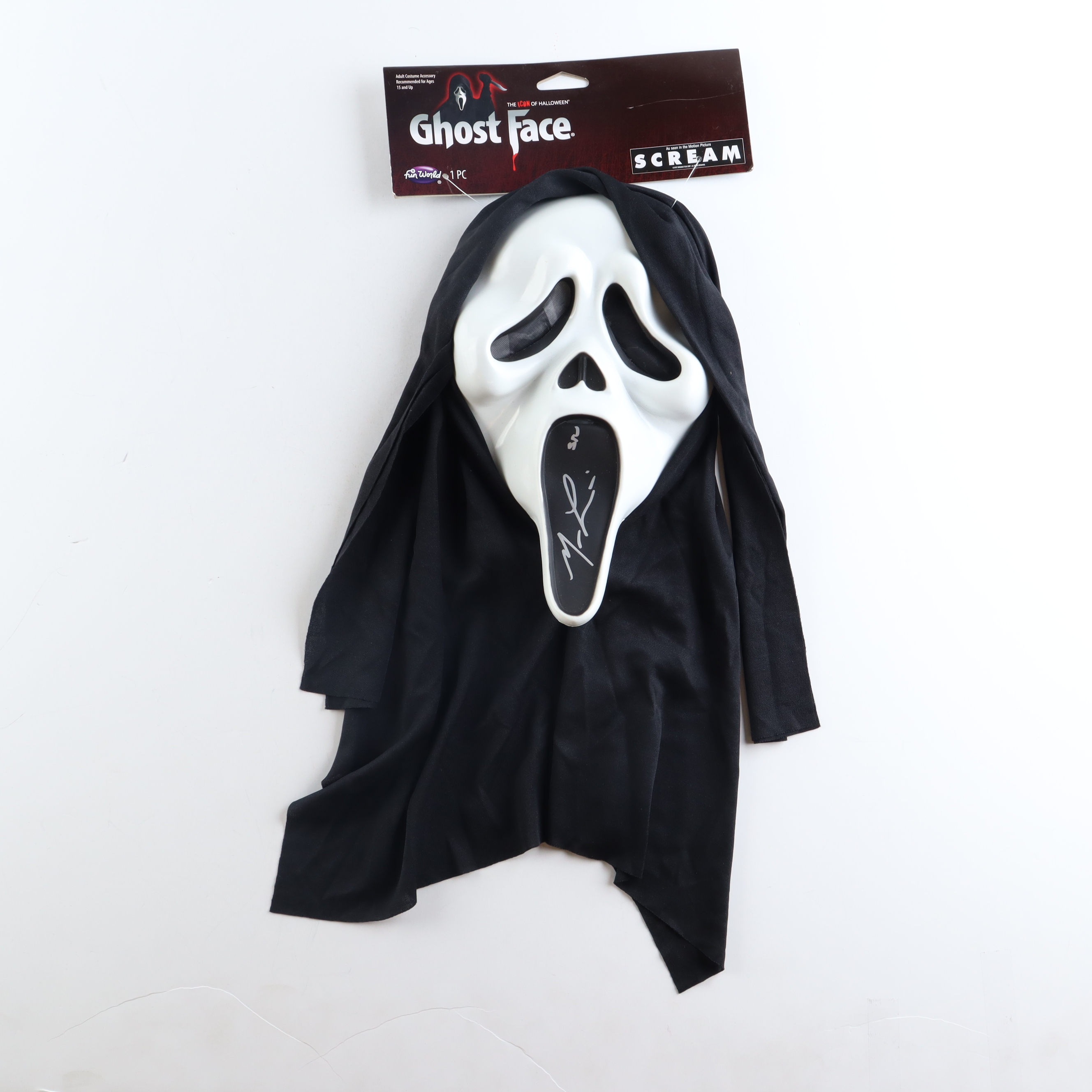 "Scream" Ghostface mask has been hand-signed and inscribed by Matthew Lillard (Stu Macher).