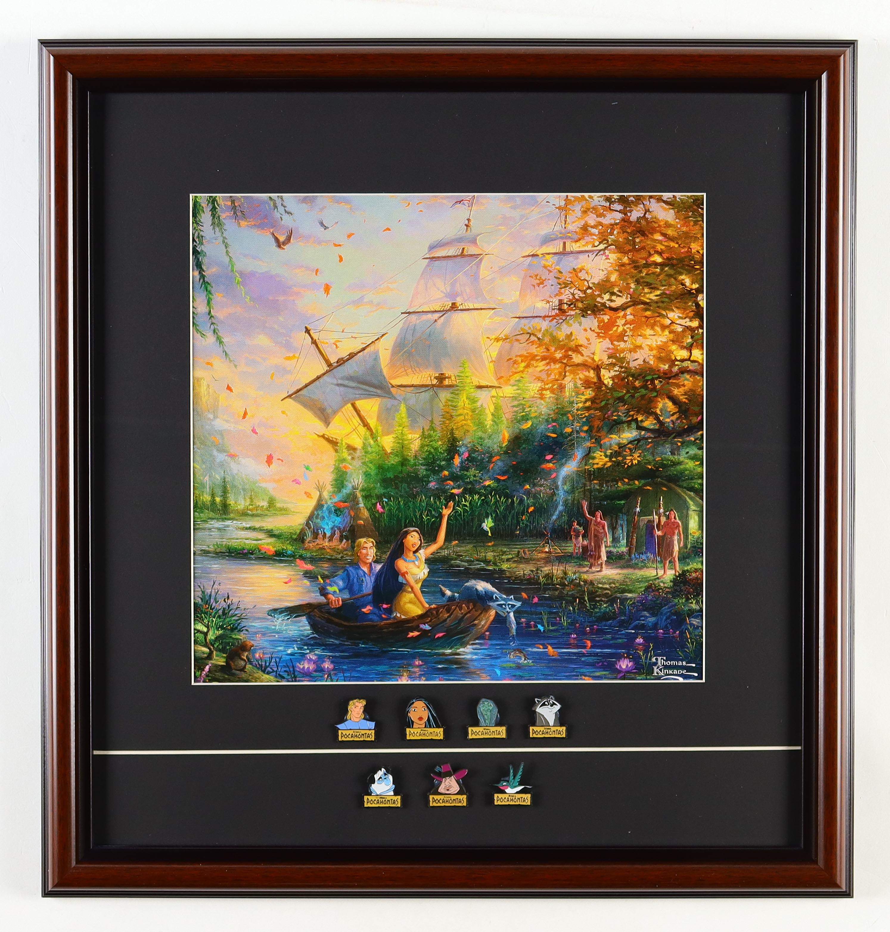Thomas Kinkade "Pocahontas" Custom Framed Print Display With Complete Set Of (7) Character Pins