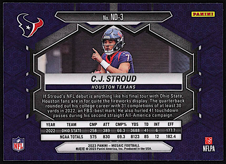 CJ Stroud 2023 Panini Mosaic NFL Debut #3 RC