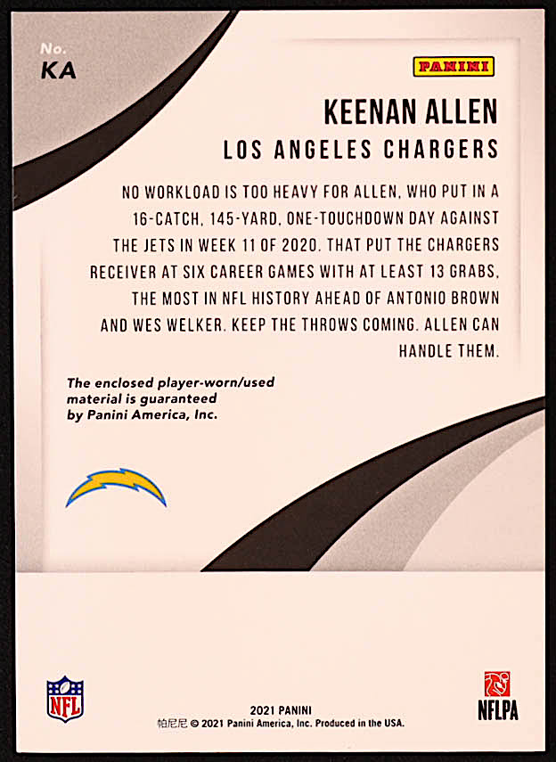 Keenan Allen 2021 Panini Jumbo Jersey Holo Silver #KA #23/31
