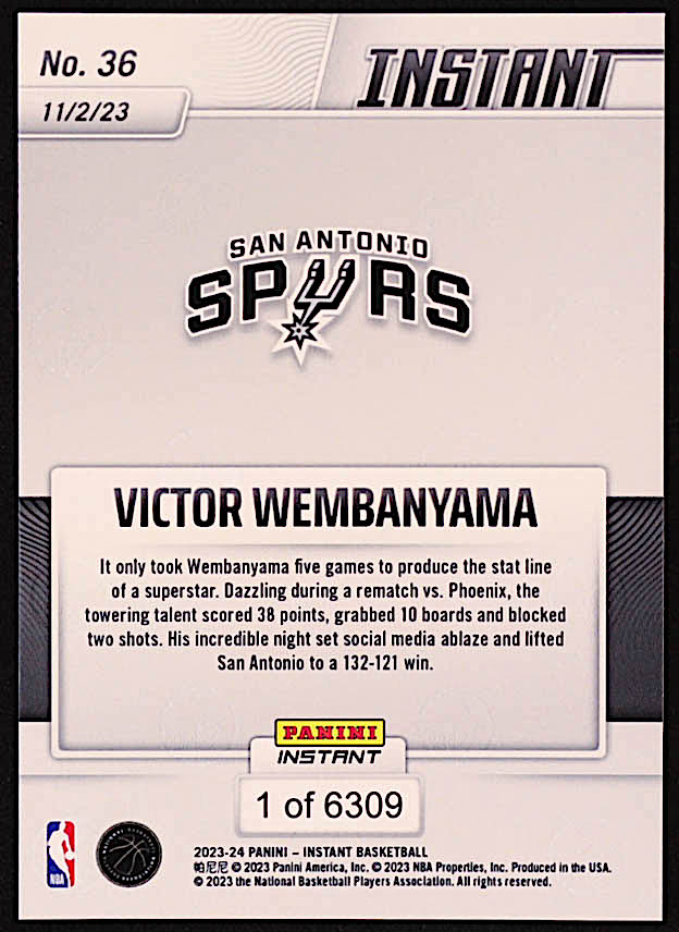 Victor Wembanyama 2023-24 Panini Instant #36 RC