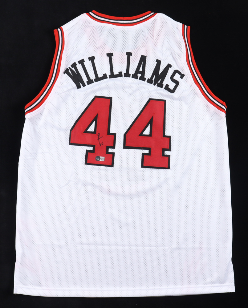 Custom jersey. Everything is sewn on, size XL. Hand-signed by Patrick Williams. Please note, there are red stains on the front, near the reverse number, and back of the jersey. Please refer to the photos for the condition of the item.