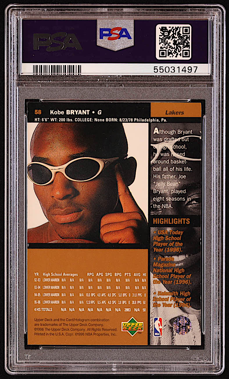 Kobe Bryant 1996-97 Upper Deck #58 RC (PSA 8)