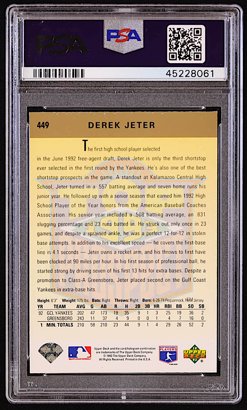 Derek Jeter 1993 Upper Deck #449 RC (PSA 8)